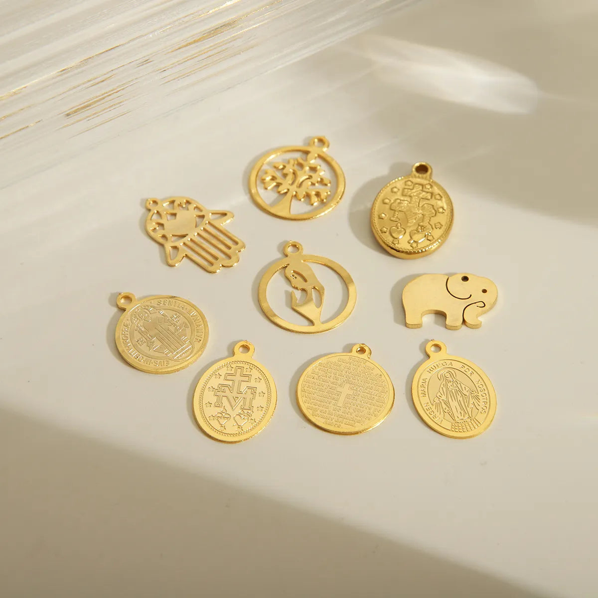 1 Piece 18mm 19mm 20mm 201 Stainless Steel 18K Gold Plated Elephant Tree Priest Polished Pendant