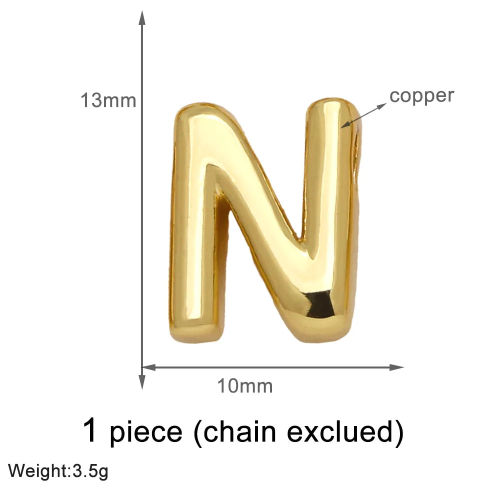 1 Piece Copper 18K Gold Plated Letter Pendant Chain