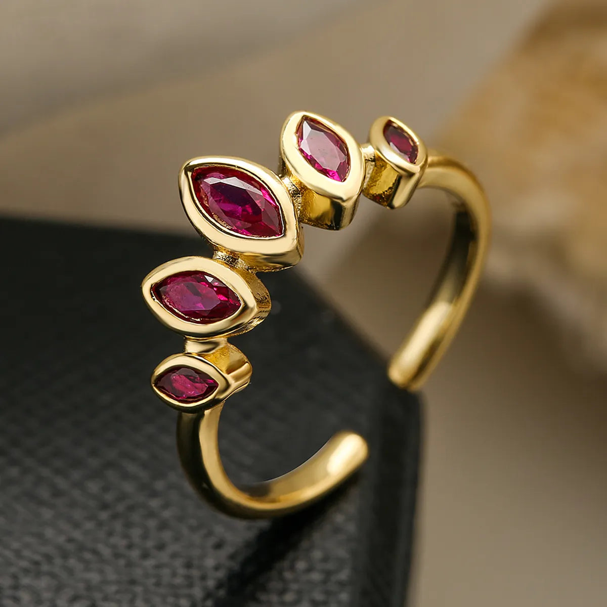 1 Piece Fashion Leaf Copper Plating Inlay Zircon Open Ring