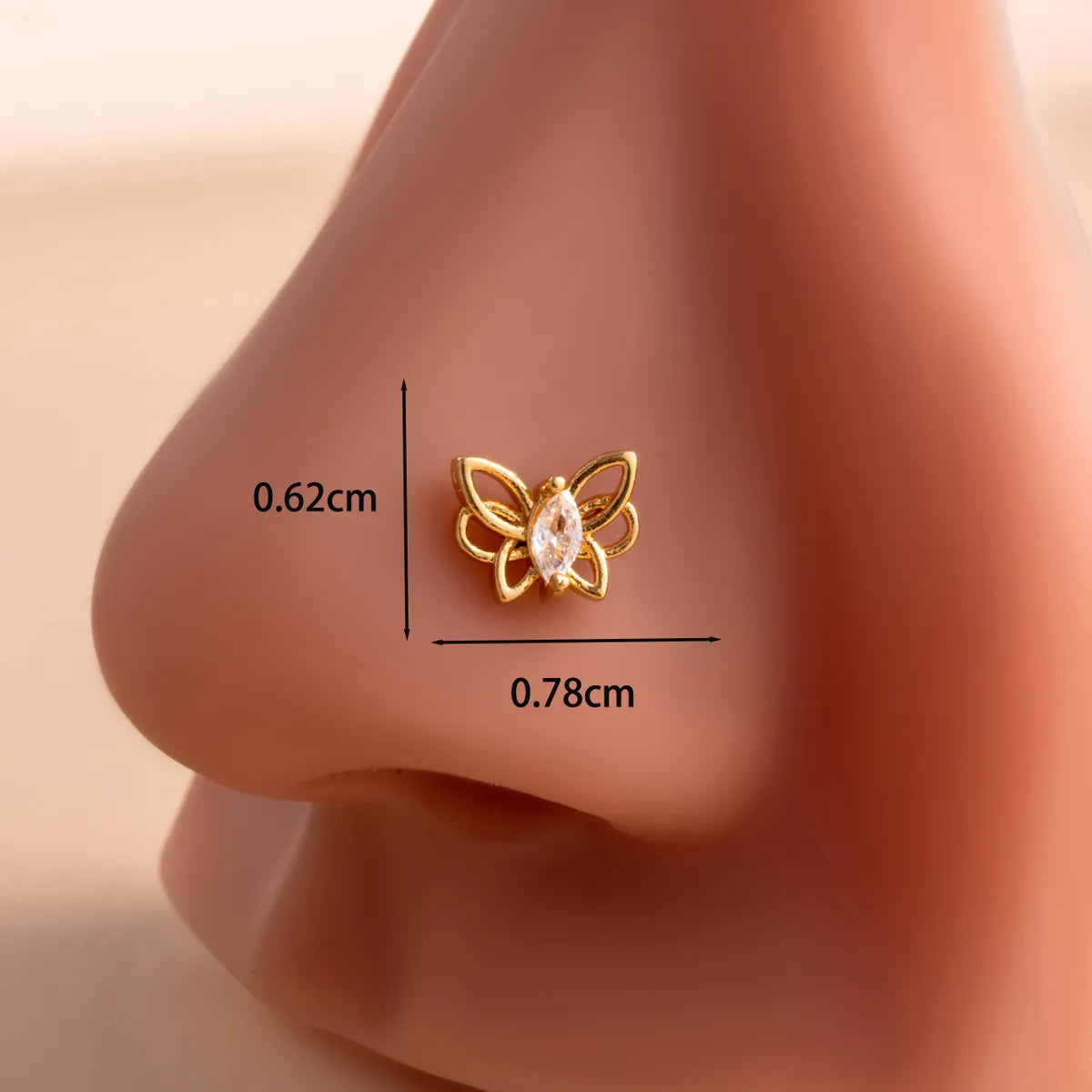 1 Piece Nose Rings & Studs Casual French Style Korean Style Pentagram Heart Shape Wings 316L Stainless Steel Copper Inlay Zircon Nose Rings & Studs