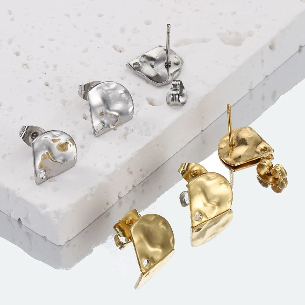 10 PCS/Package 12mm Hole 1~1.9mm 304 Stainless Steel 18K Gold Plated Sector Solid Color Polished Earring Findings