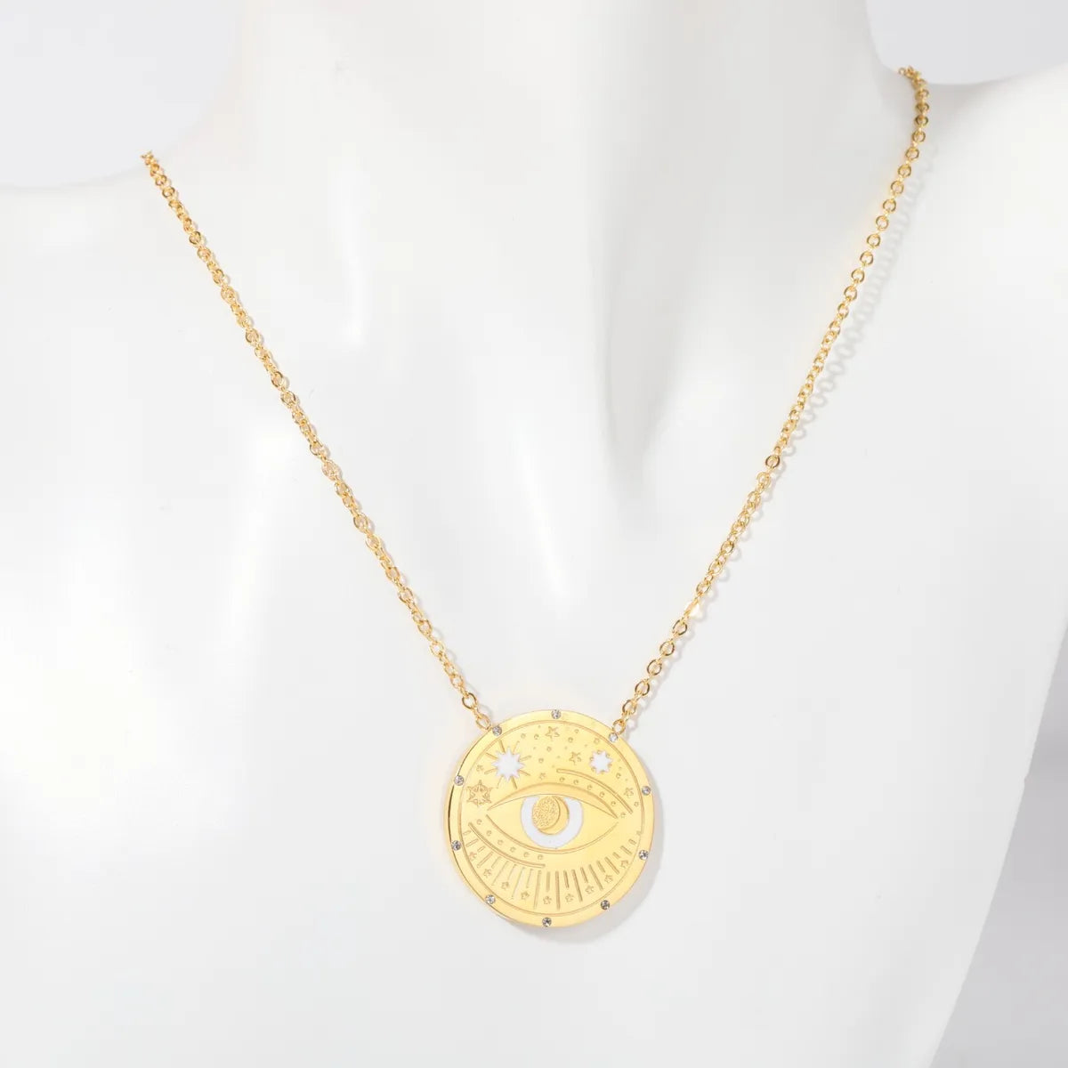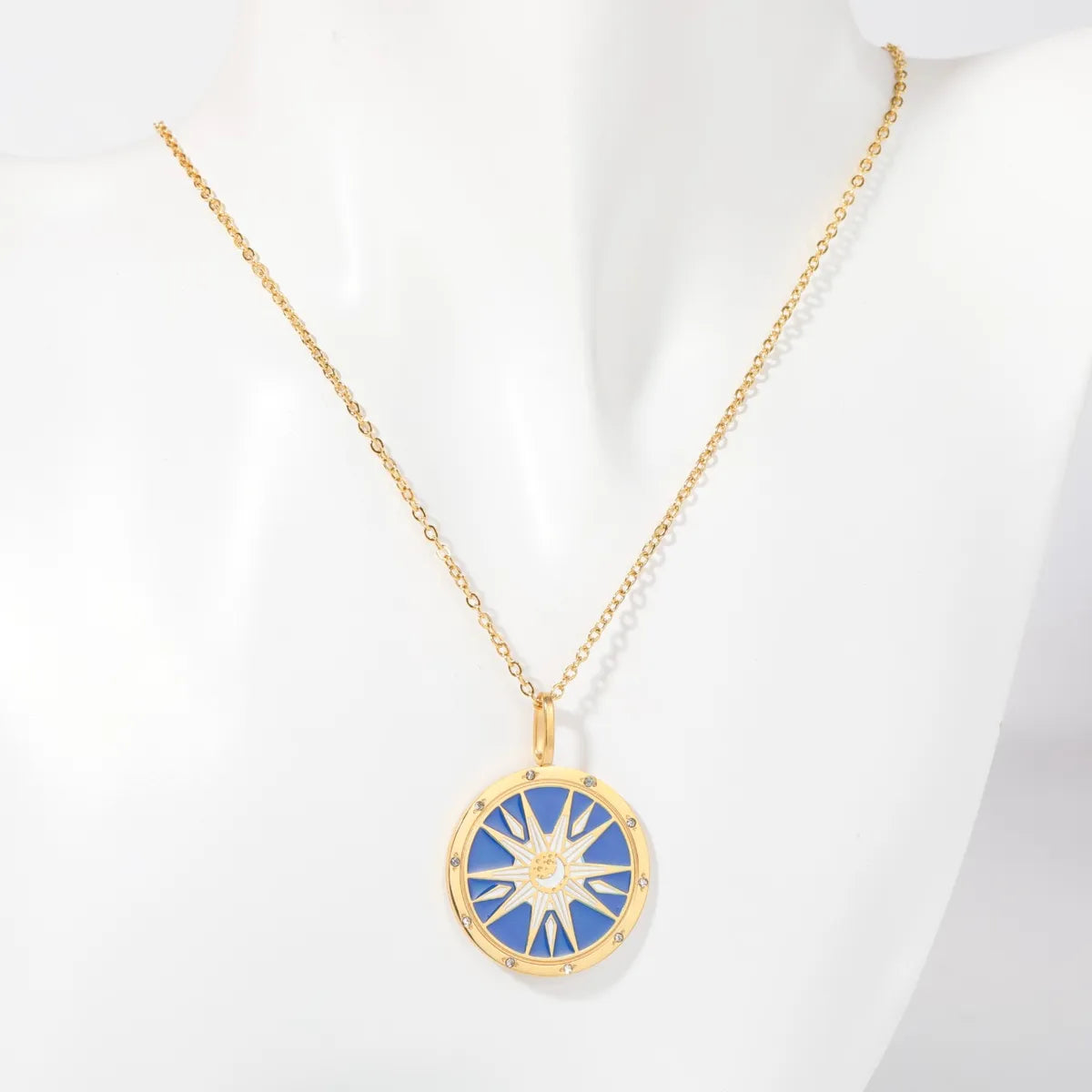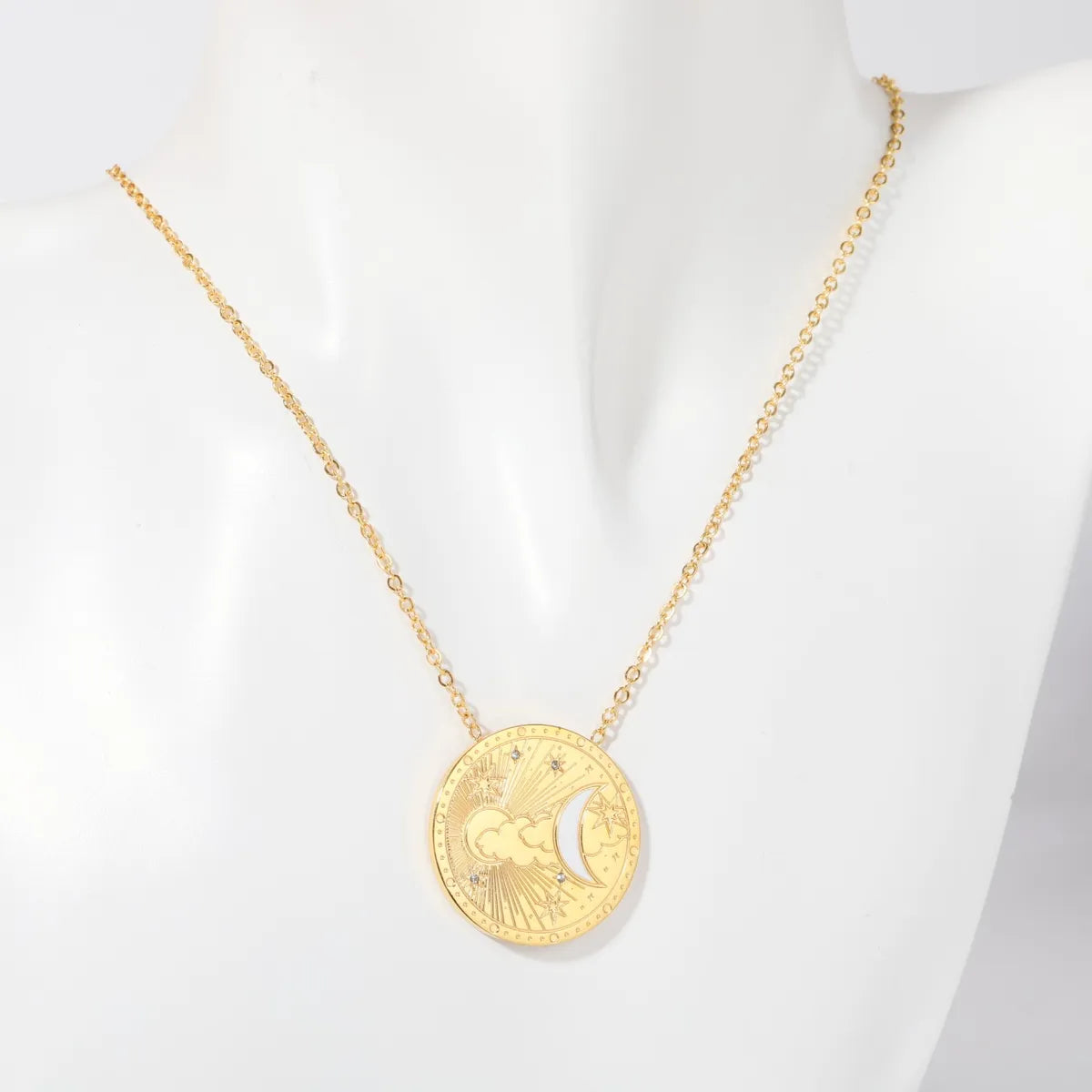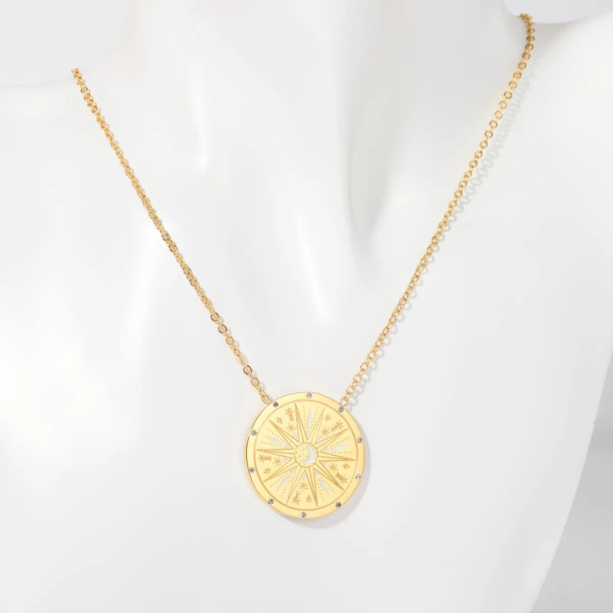 201 Stainless Steel 304 Stainless Steel Gold Plated Simple Style Commute Plating Sun Pendant Necklace