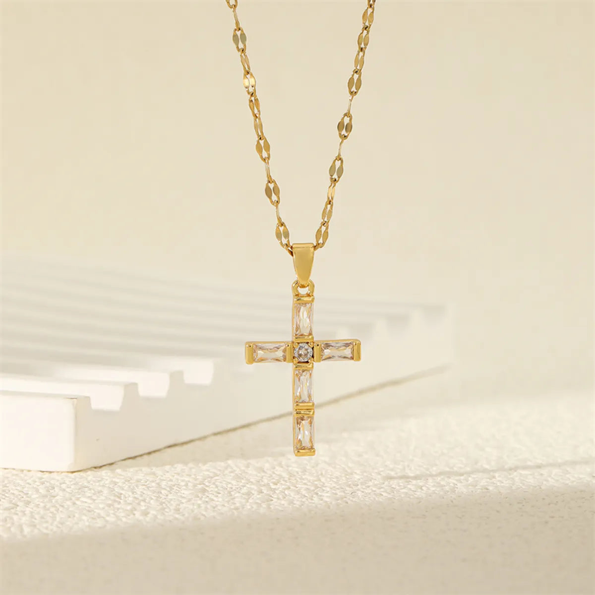 201 Stainless Steel Brass 18K Gold Plated Simple Style Classic Style Inlay Cross Zircon Pendant Necklace