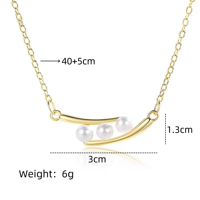 201 Stainless Steel Copper Gold Plated Inlay Geometric Artificial Pearls Pendant Necklace