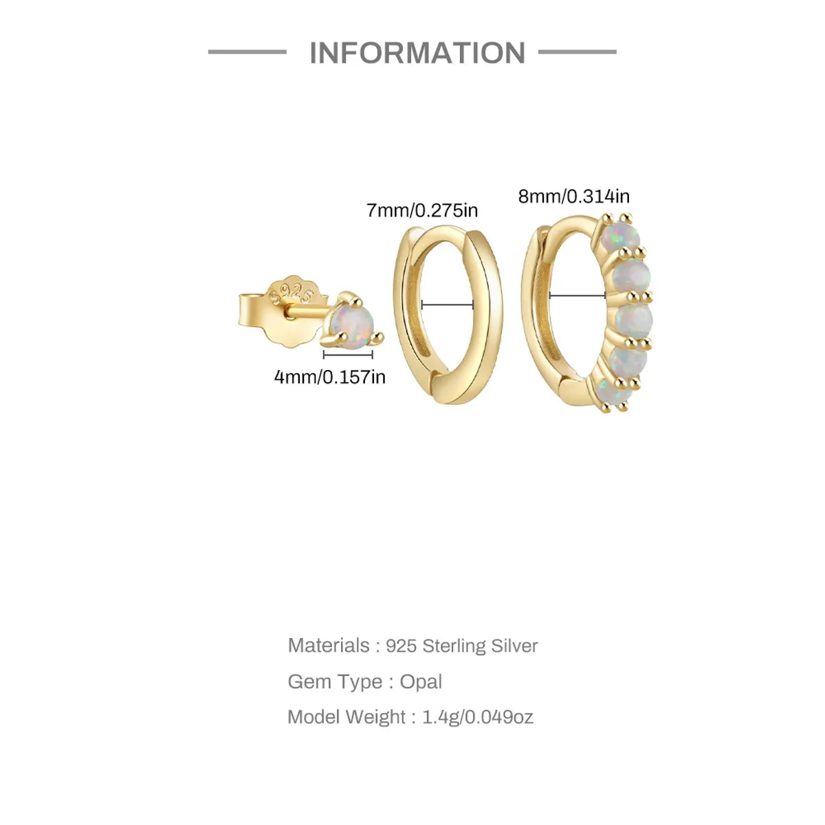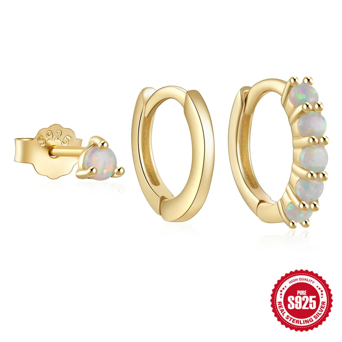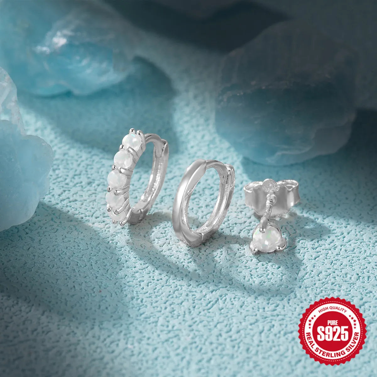 3 Pieces Set Simple Style Round Plating Inlay Sterling Silver Gem Earrings Ear Studs