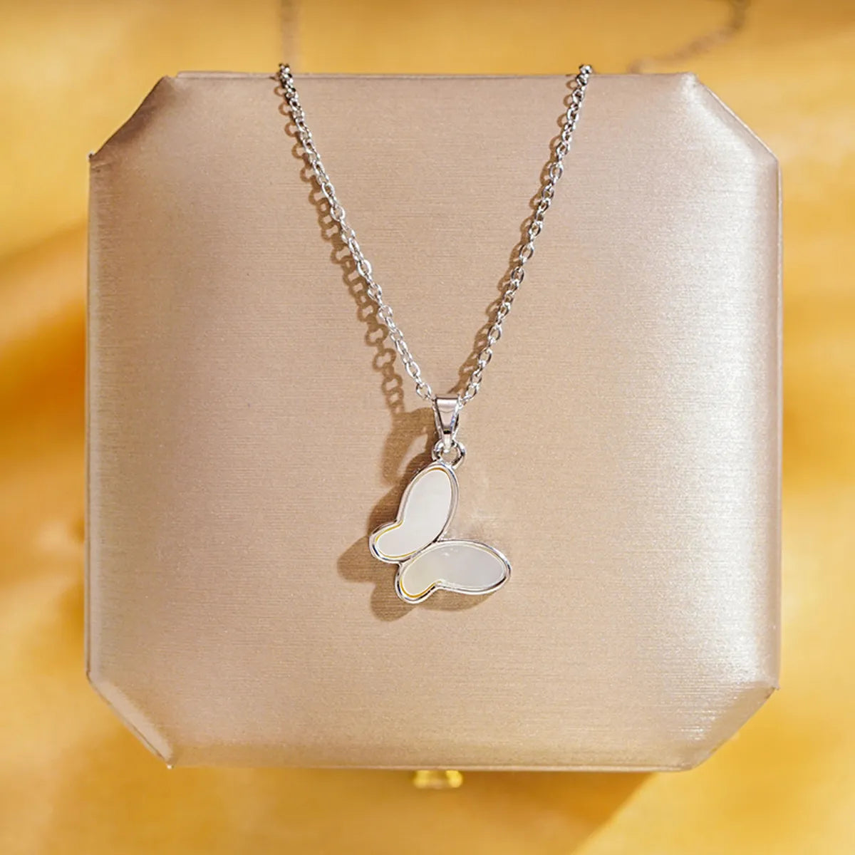 304 Stainless Steel Copper 18K Gold Plated K Gold Plated Cute Inlay Flower Butterfly Acrylic Shell Zircon Pendant Necklace