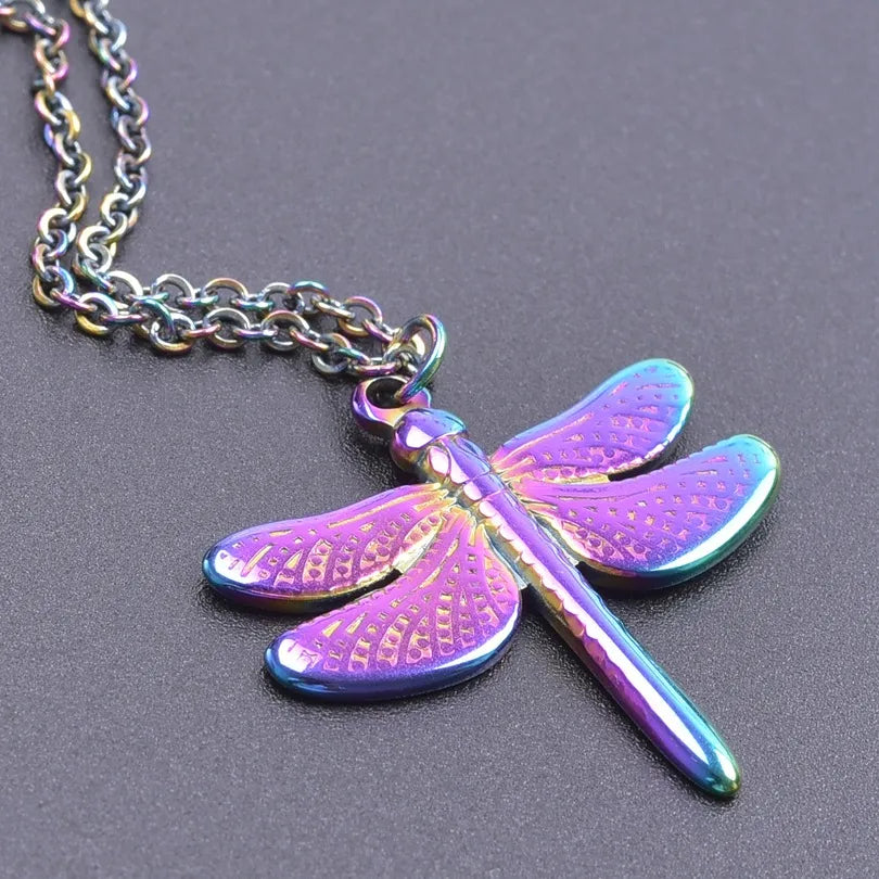 304 Stainless Steel Hip-Hop Retro Plating Dragonfly Pendant Necklace