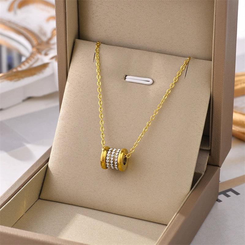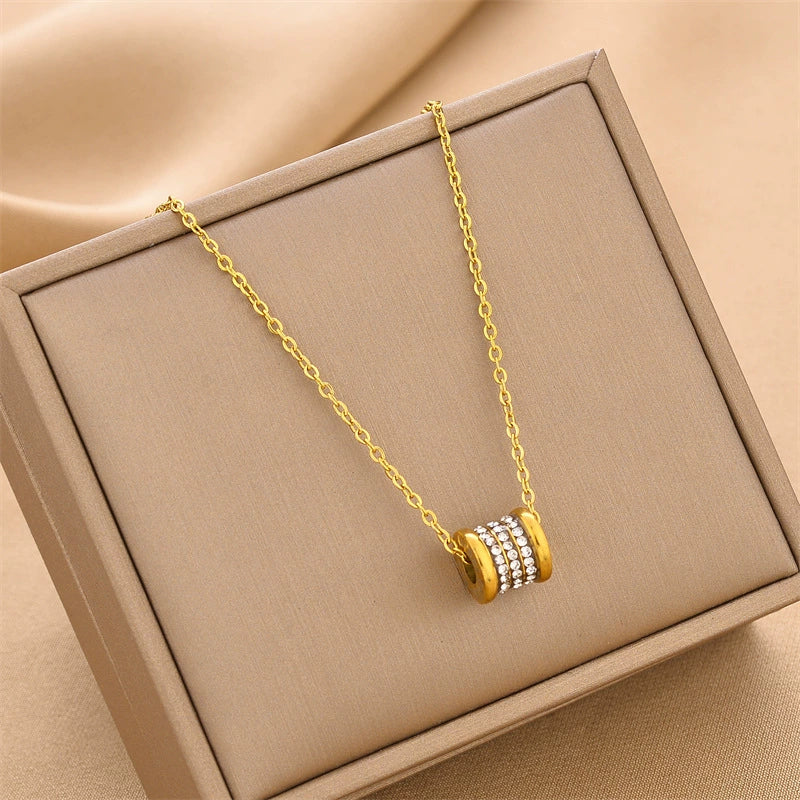 Allmatch Titanium Steel Necklace With Small Man Waist Pendant Electroplated Mixed Gem Inlay Geometric Style For Women
