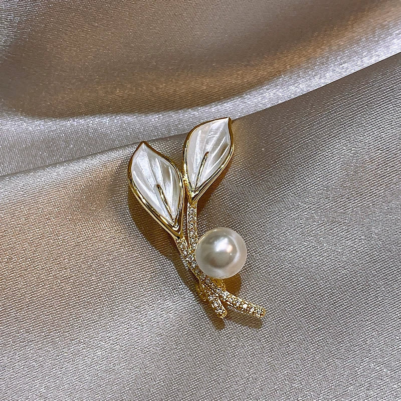 Alloy Leaf Pearl Women's Brooch Electroplating Design Natural Style For Autumn And Winter Coat Accessories