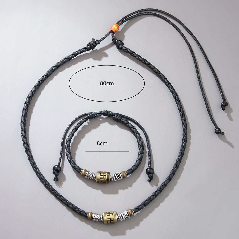 Alloy Retro Geometric Metal Pendant Woven Wax Rope Adjustable Unisex Necklace With Electroplating