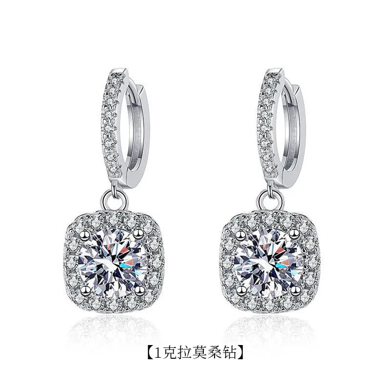 Basic Modern Style Square Sterling Silver Gra Inlay Moissanite Drop Earrings