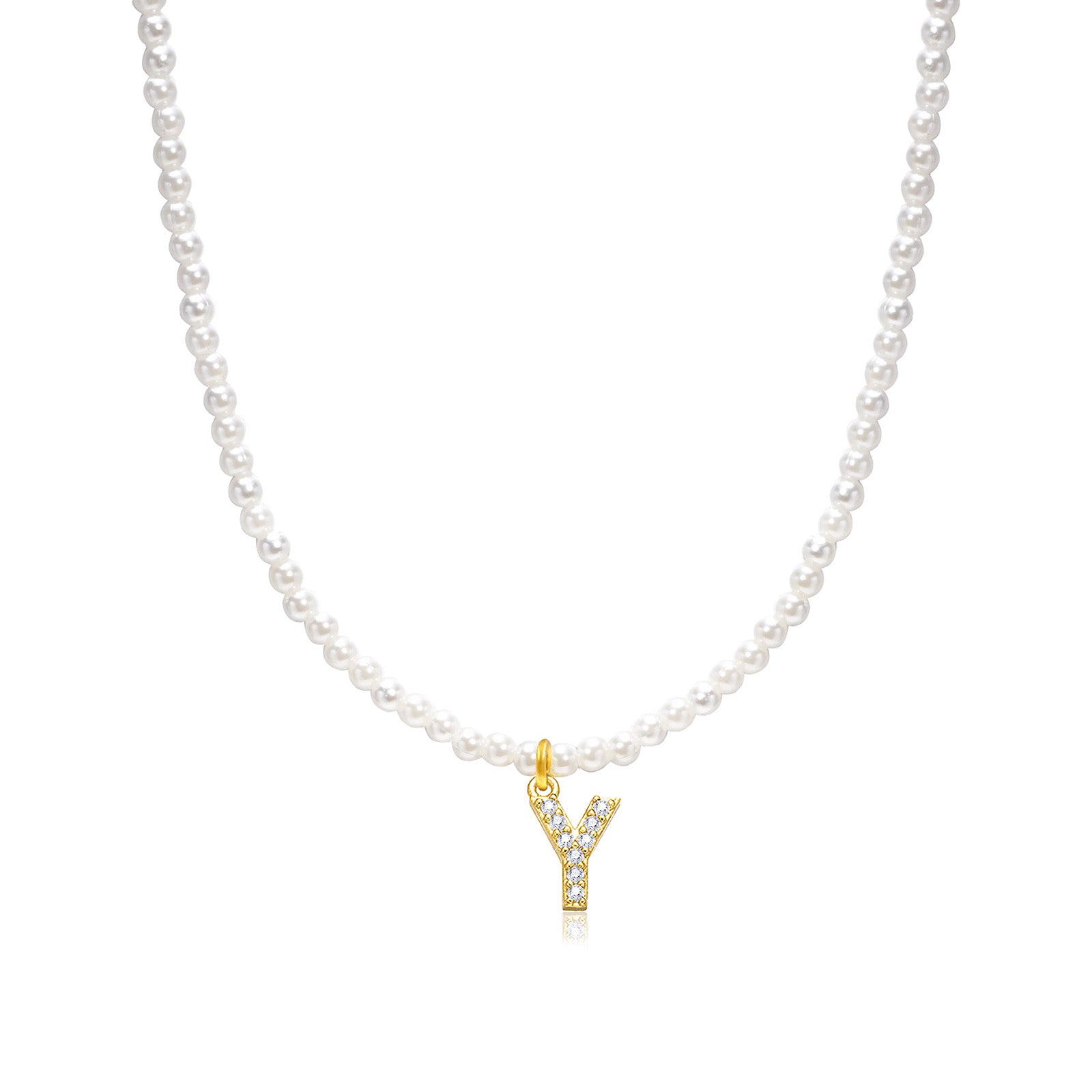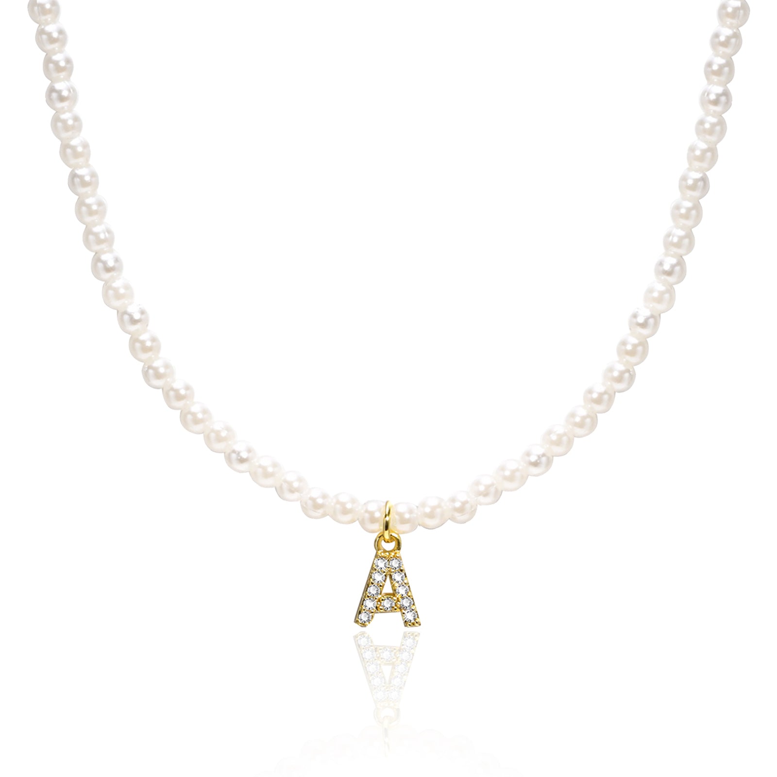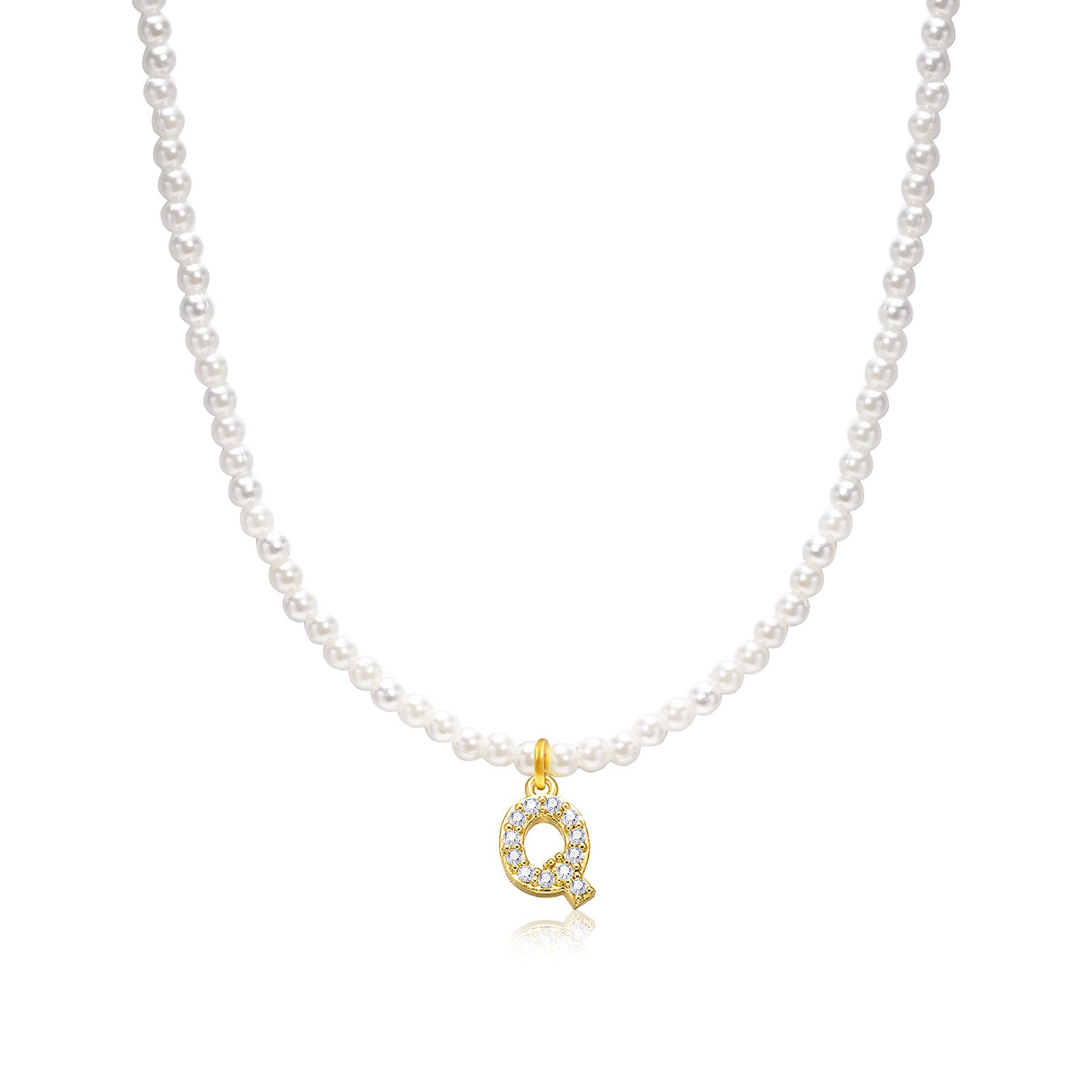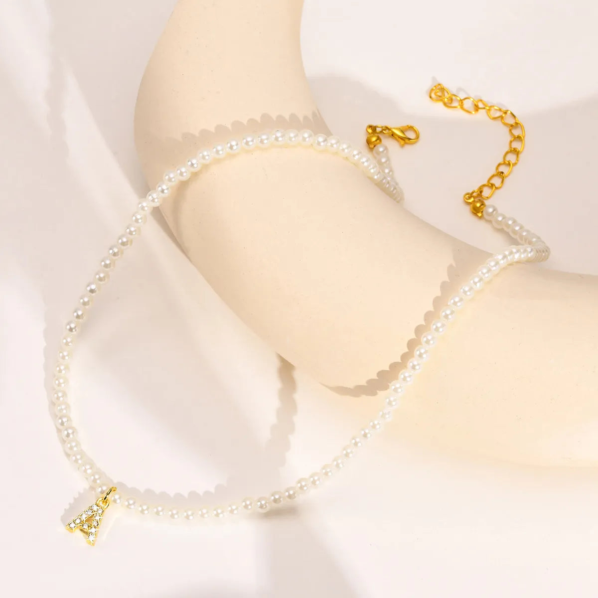 Basic Simple Style Letter Gold Plated Zircon Imitation Pearl Wholesale Pendant Necklace