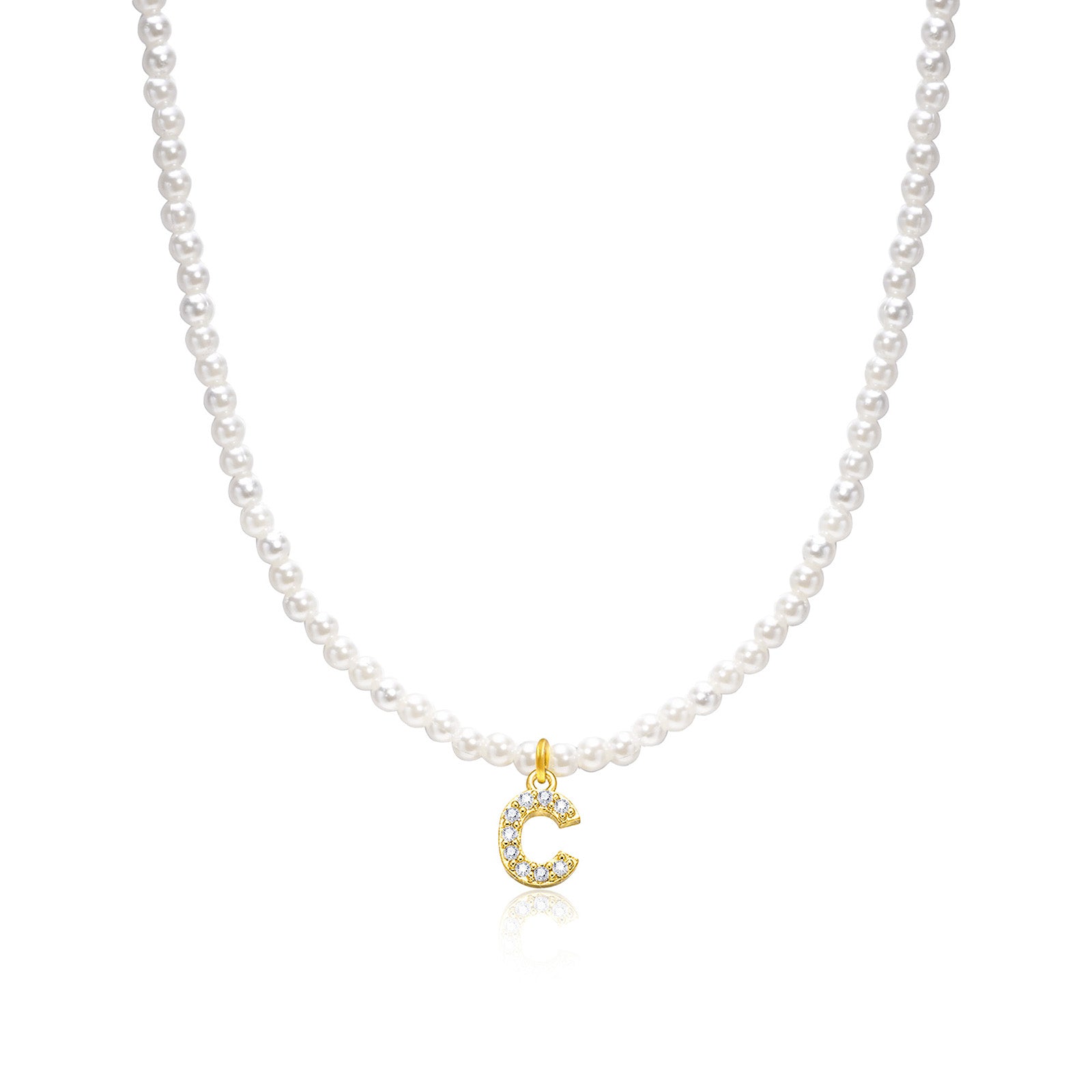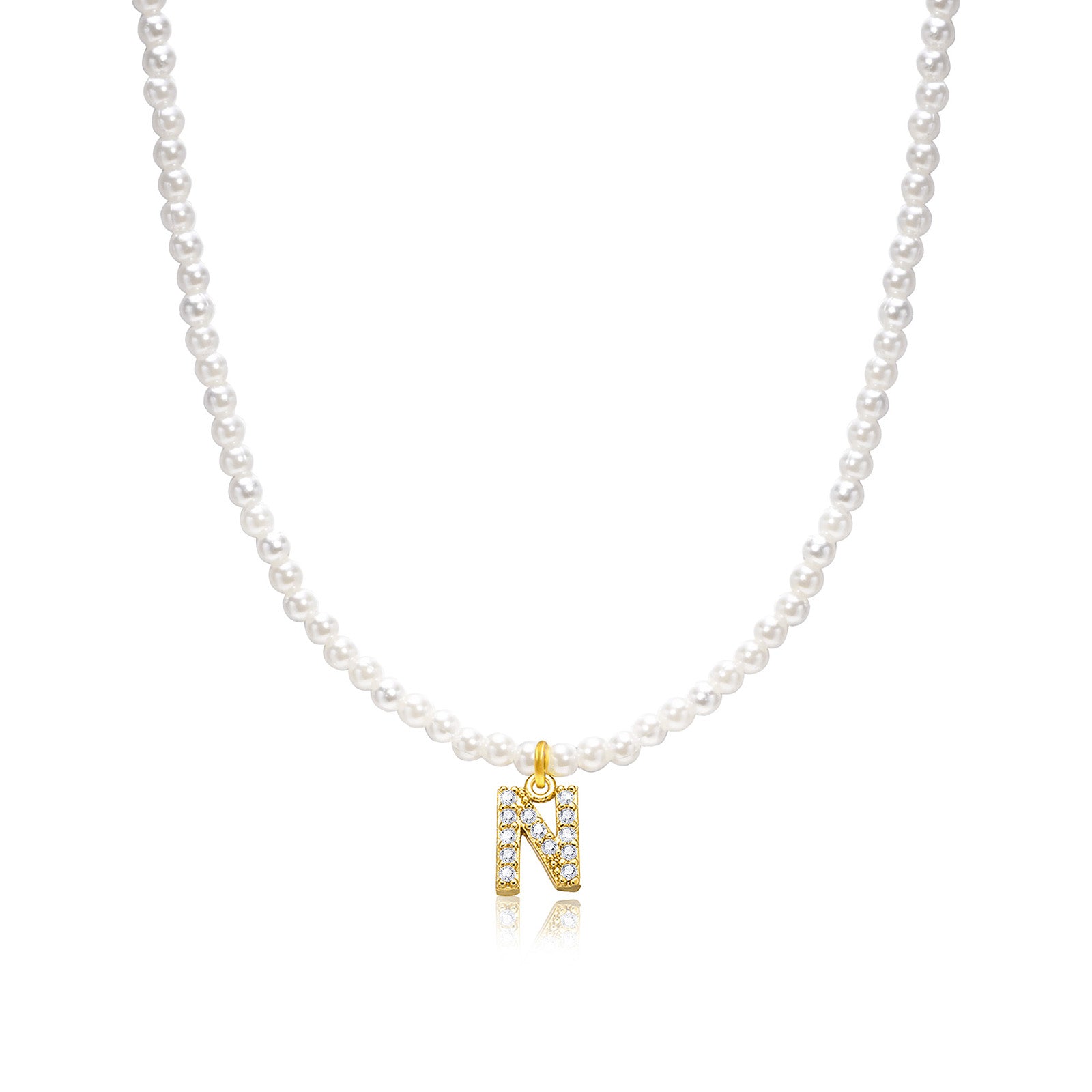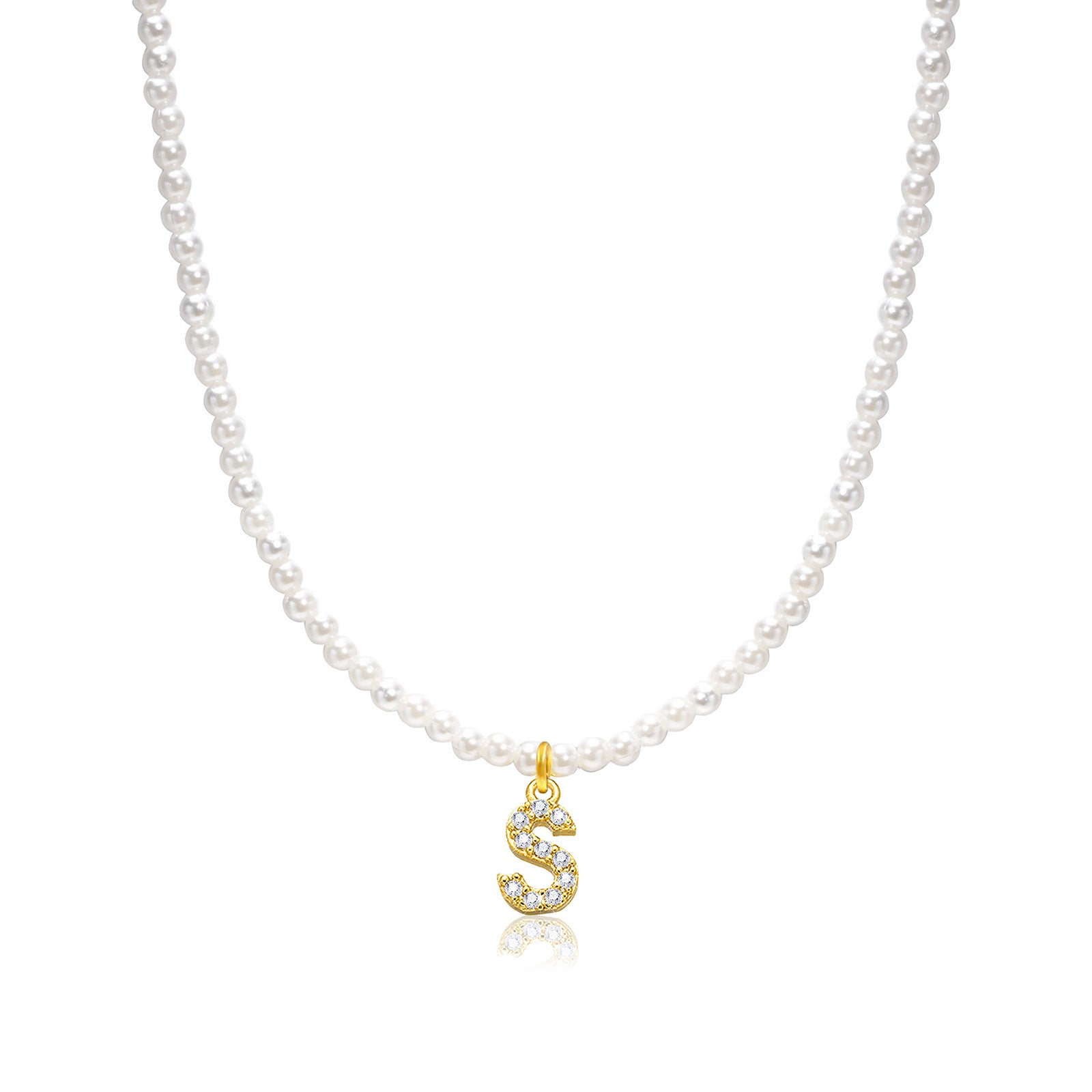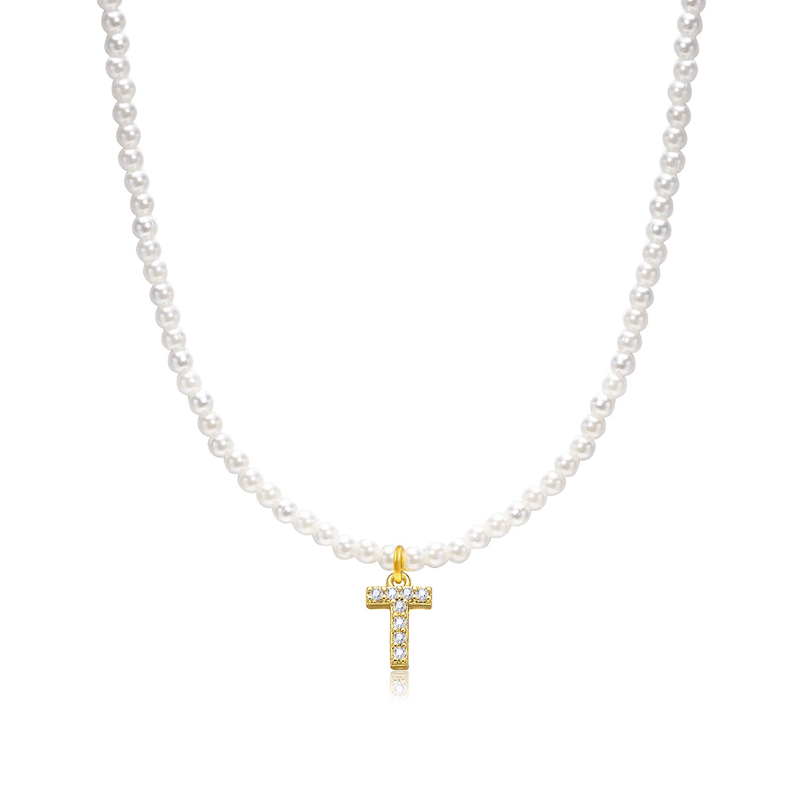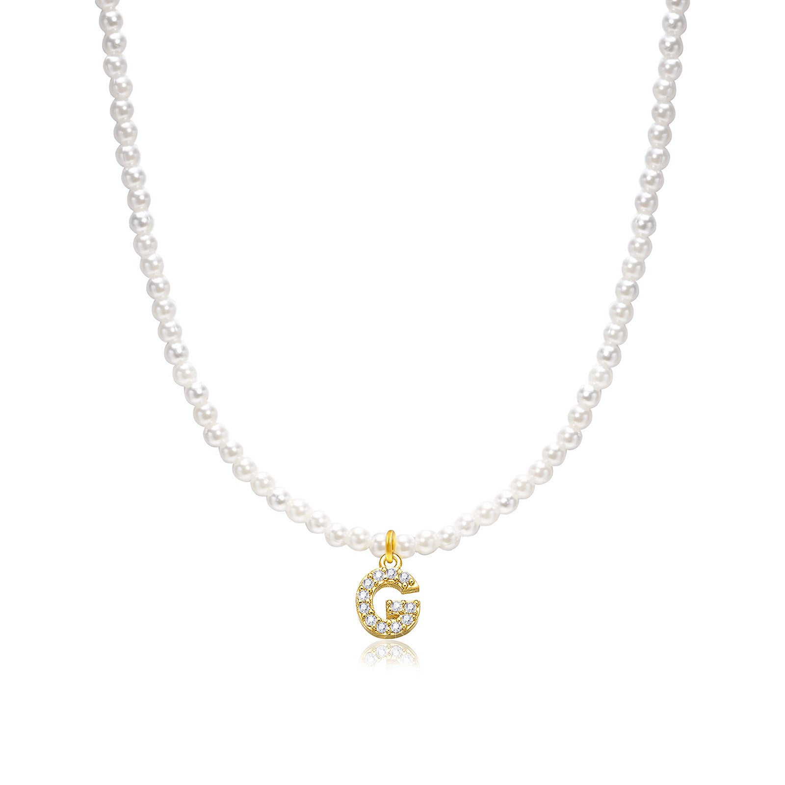 Basic Simple Style Letter Gold Plated Zircon Imitation Pearl Wholesale Pendant Necklace