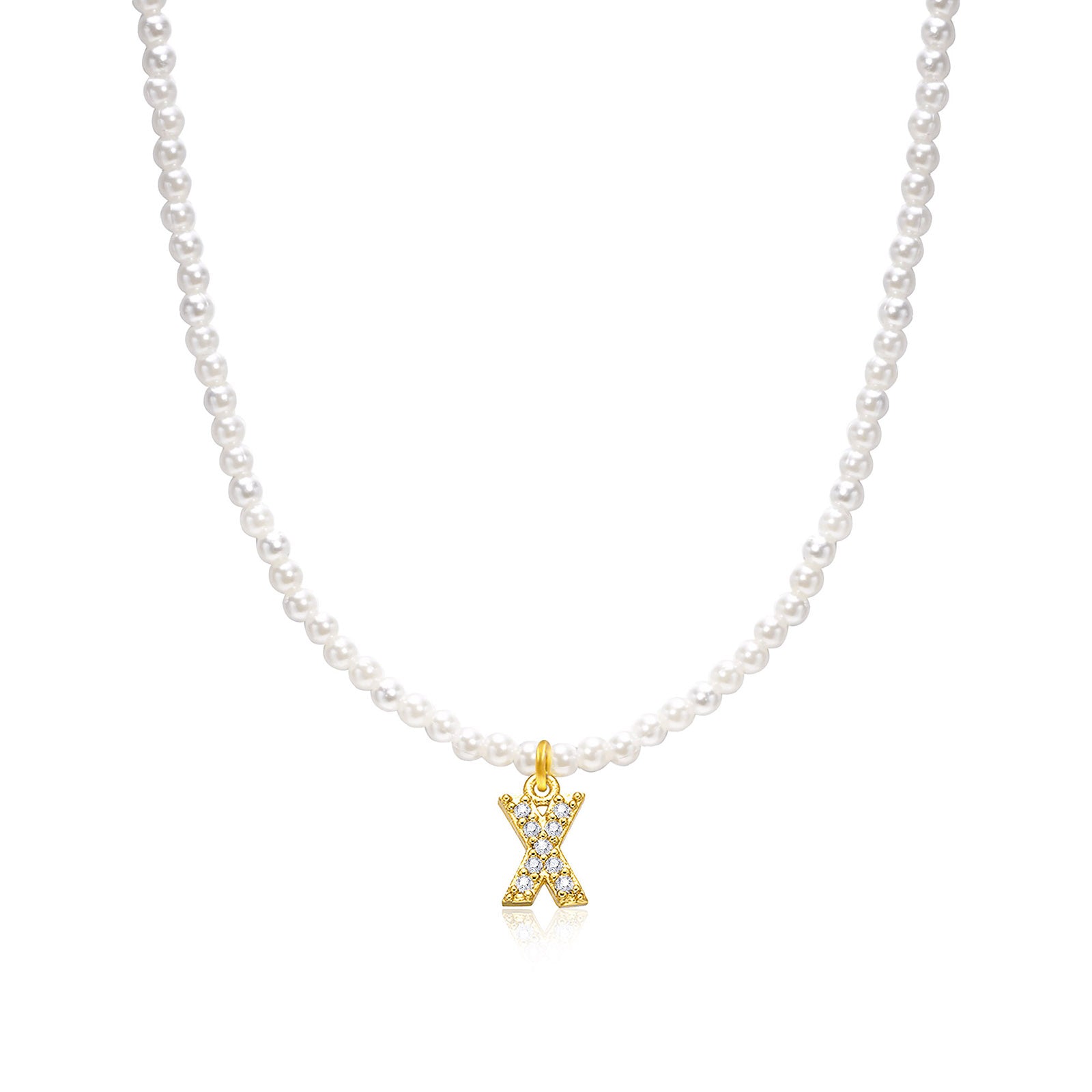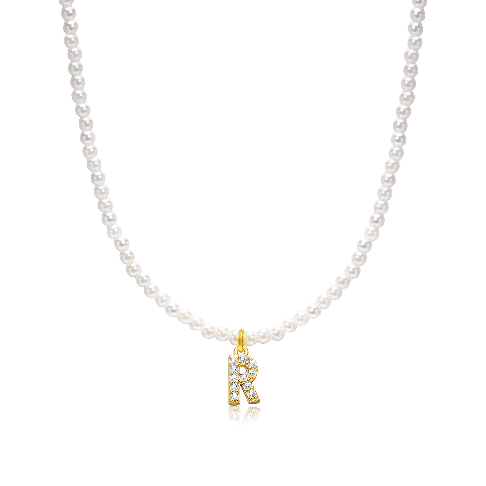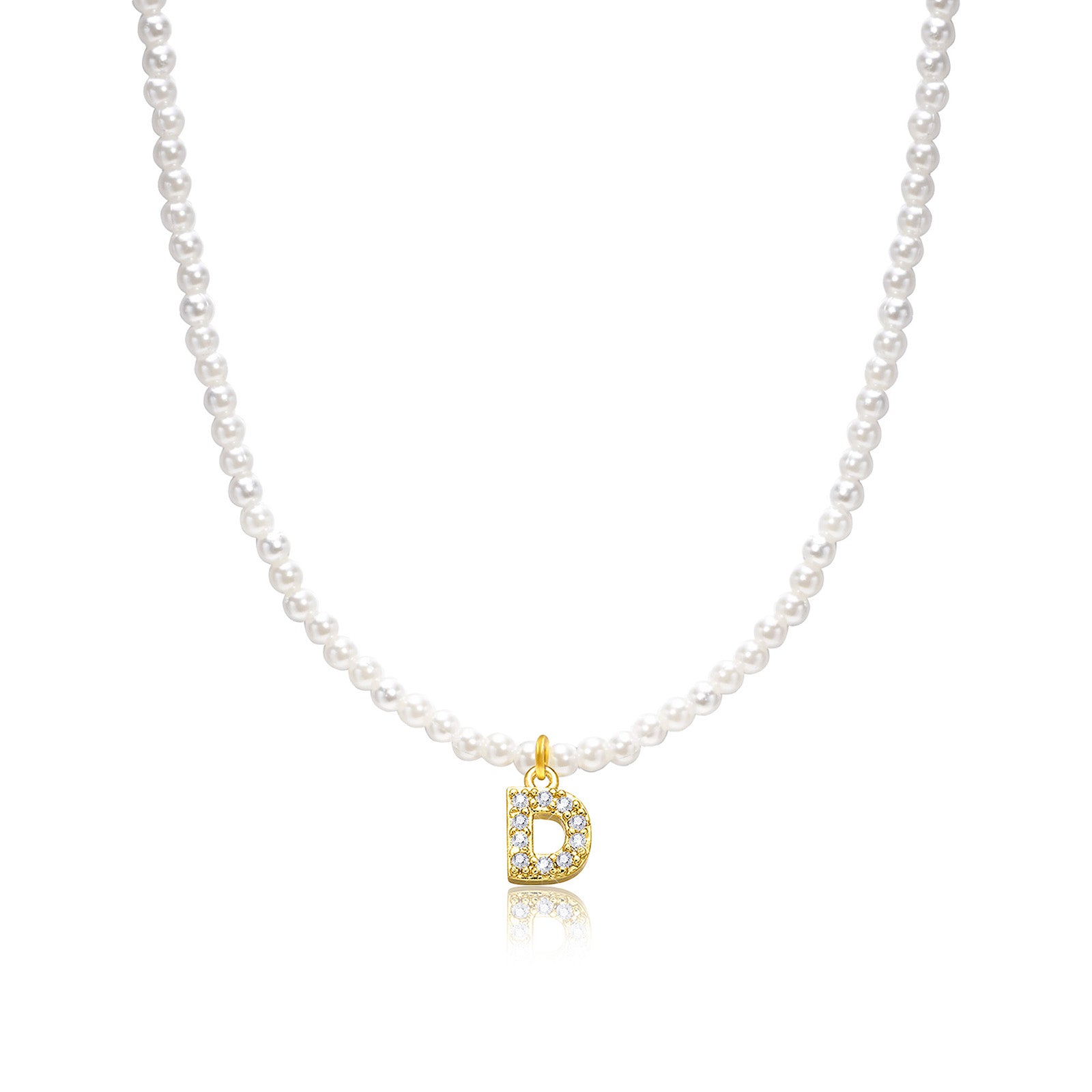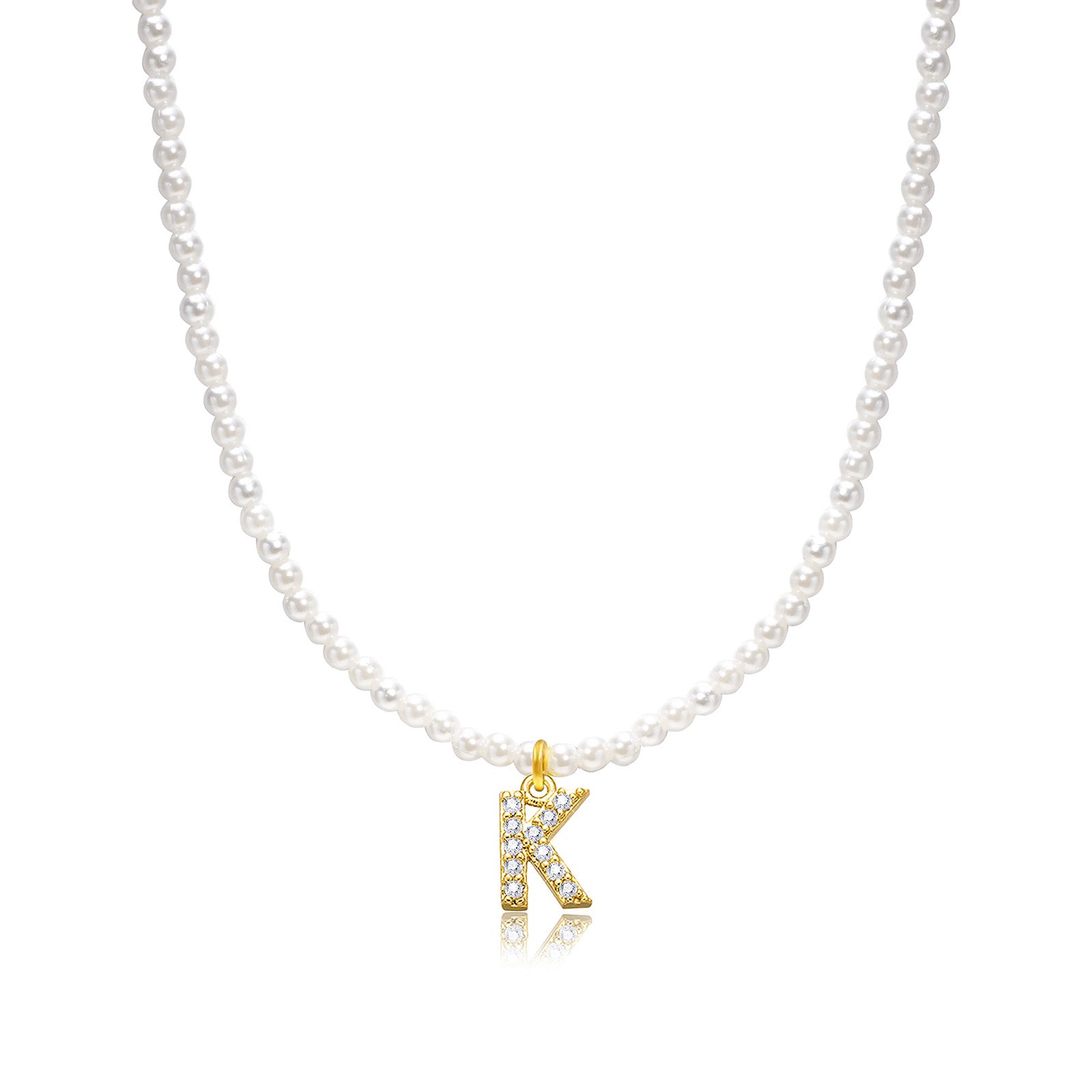Basic Simple Style Letter Gold Plated Zircon Imitation Pearl Wholesale Pendant Necklace