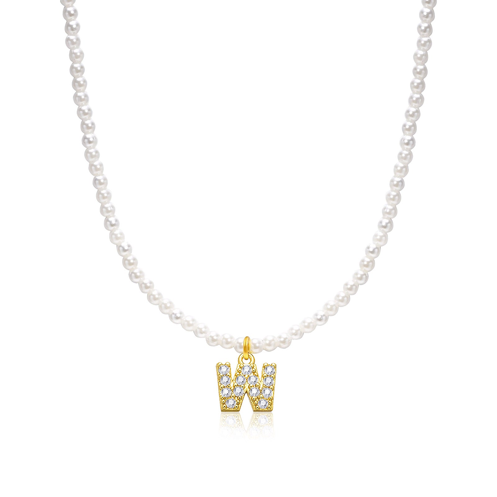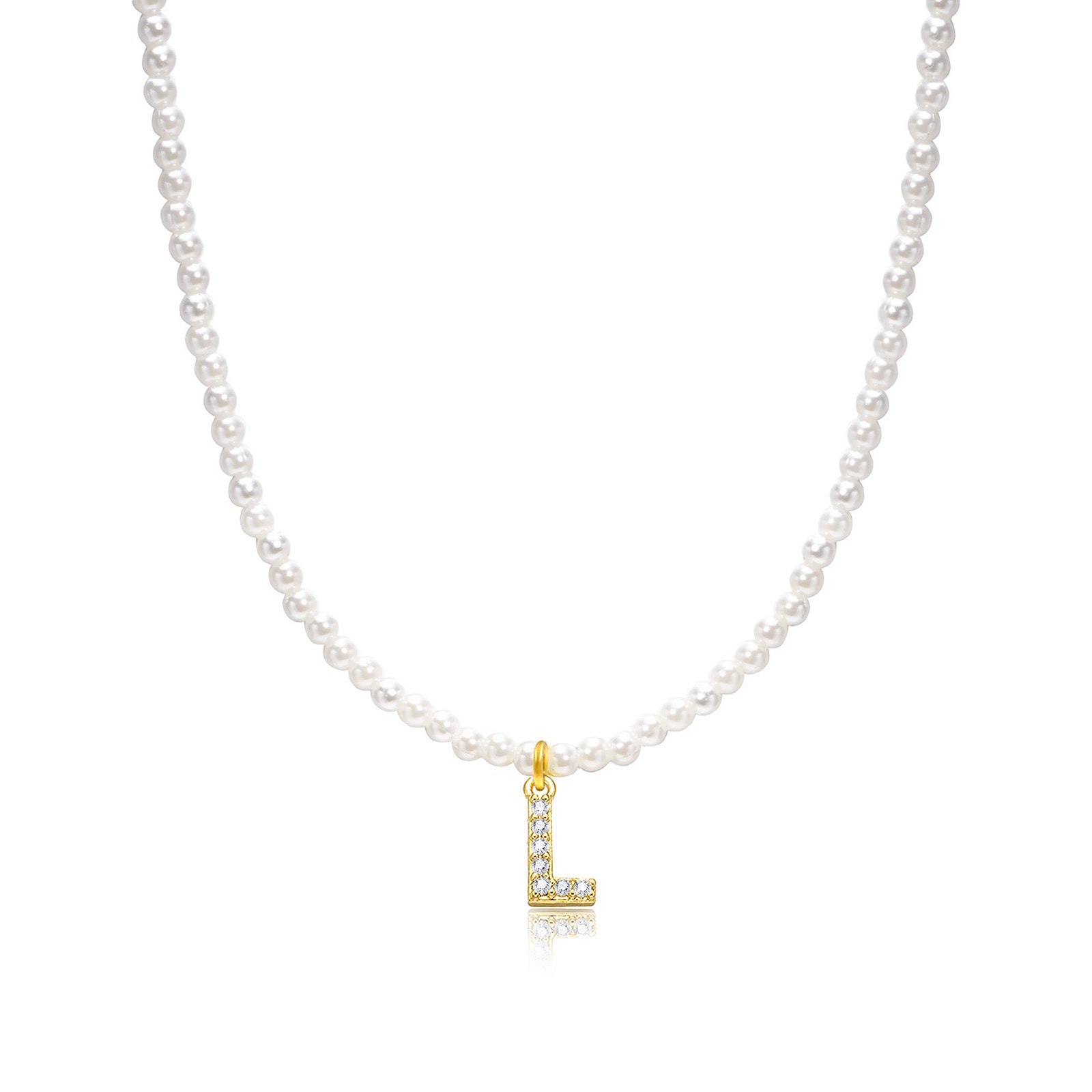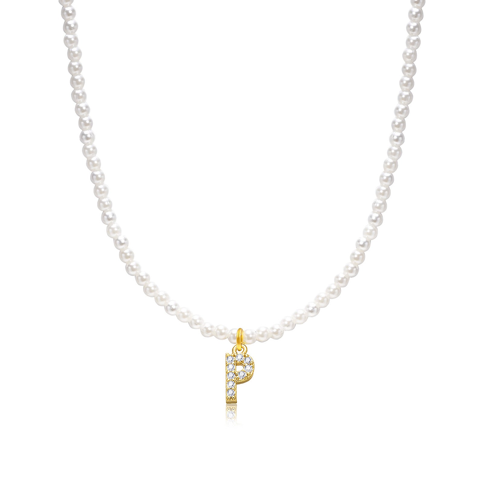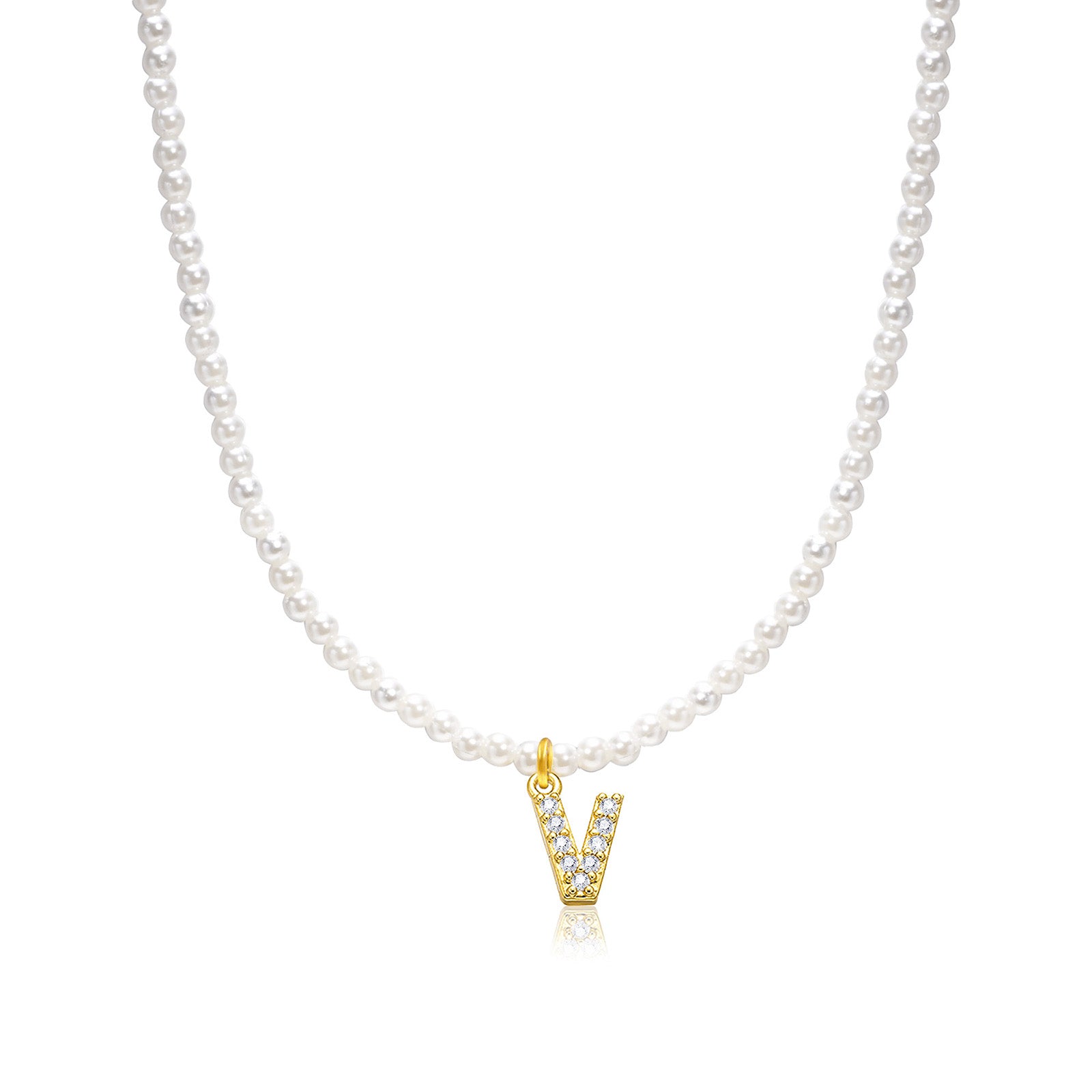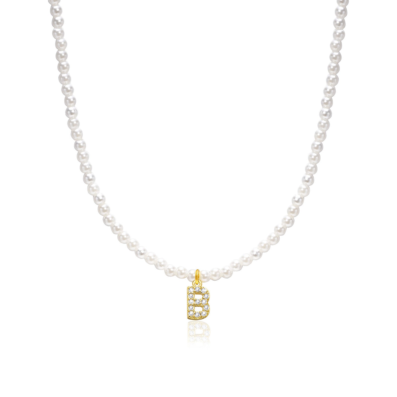 Basic Simple Style Letter Gold Plated Zircon Imitation Pearl Wholesale Pendant Necklace