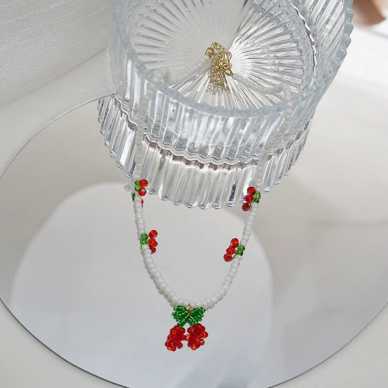 Beaded Cherry Flower Crystal Woven Necklace And Bracelet For Women With Fruit Pattern