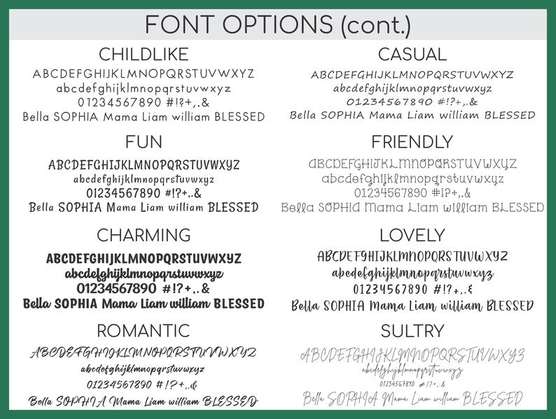 * Font, if applicable, default to Simple if you don't say