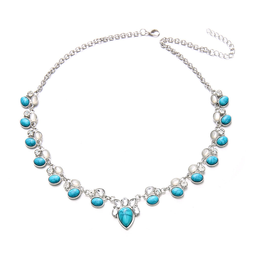 Bohemian Style Turquoise Inlaid Geometric Alloy Necklace With Electroplating
