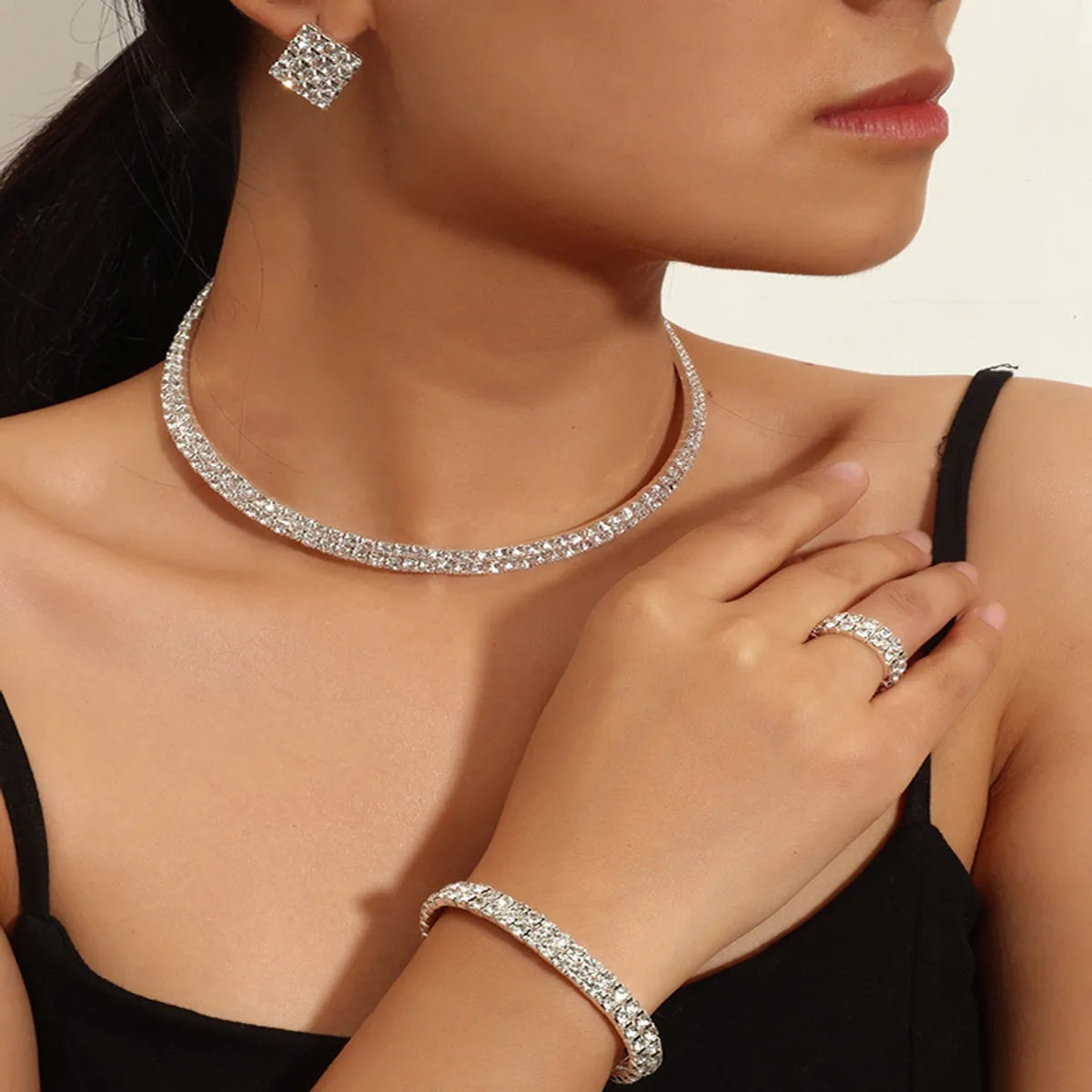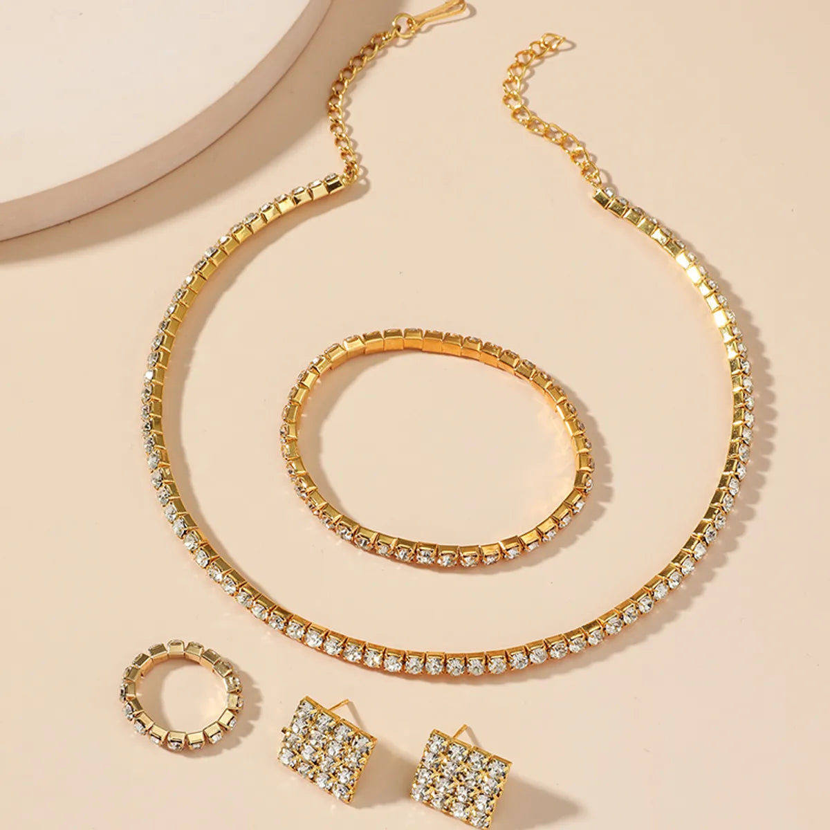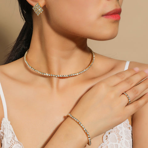 Bridal Jewelry Rhinestone Chain Necklace Bracelet Ring Earrings Set