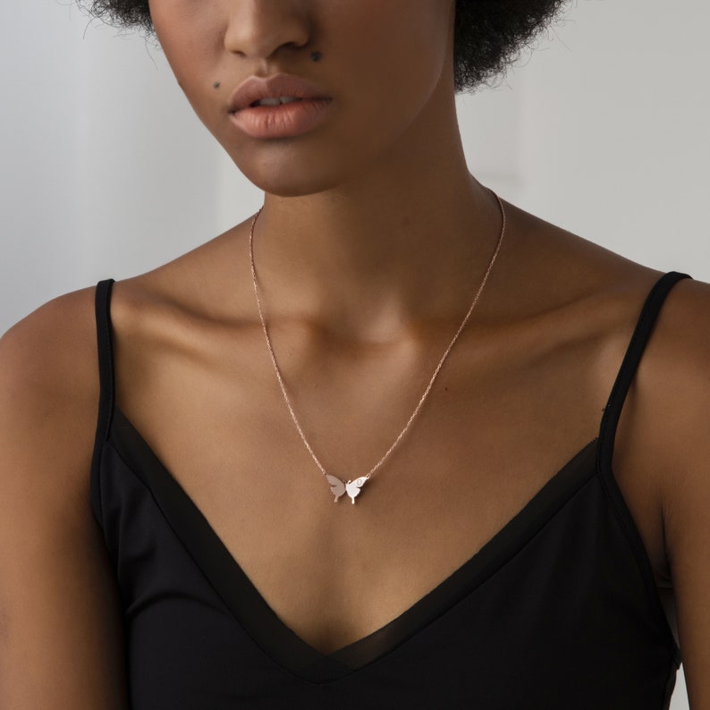 The butterfly is finished with either 14K gold fill, rose gold fill, or 925. sterling silver.