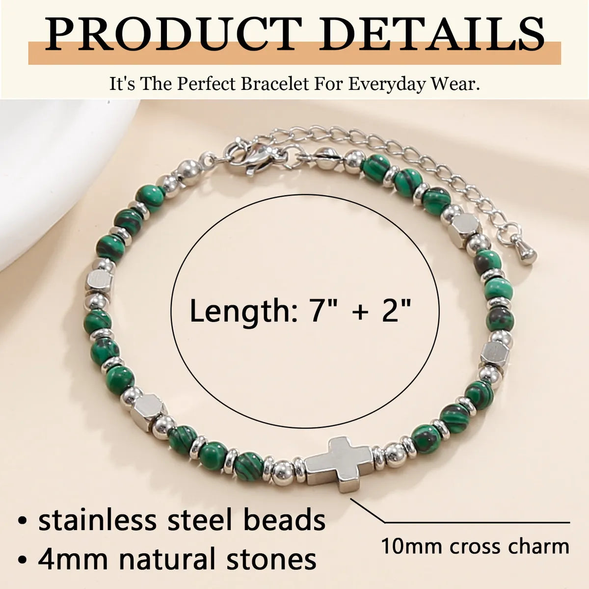 Casual Simple Style Cross 304 Stainless Steel Natural Stone Wholesale Bracelets