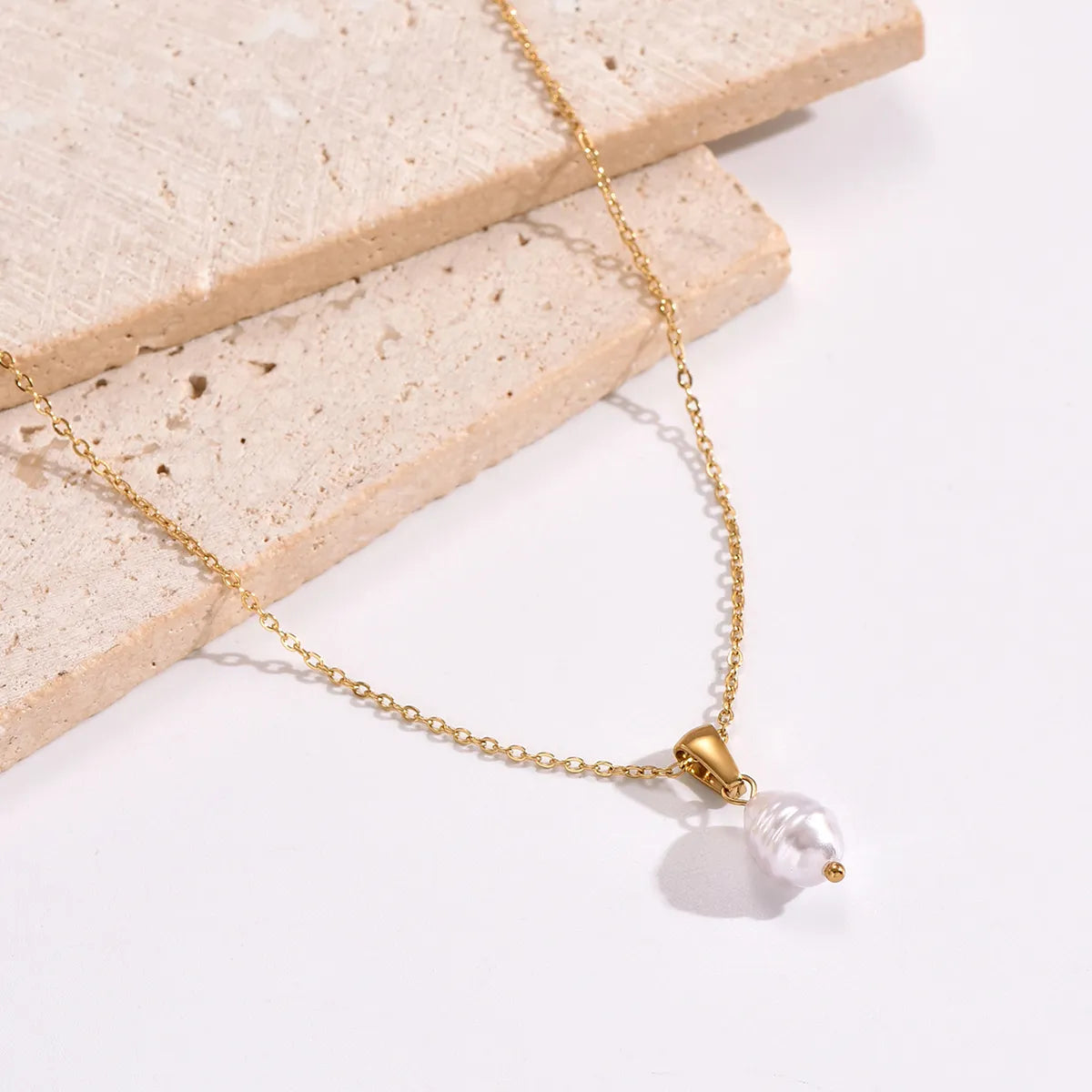 Casual Simple Style Geometric Stainless Steel Artificial Pearl Plating 14k Gold Plated Pendant Necklace