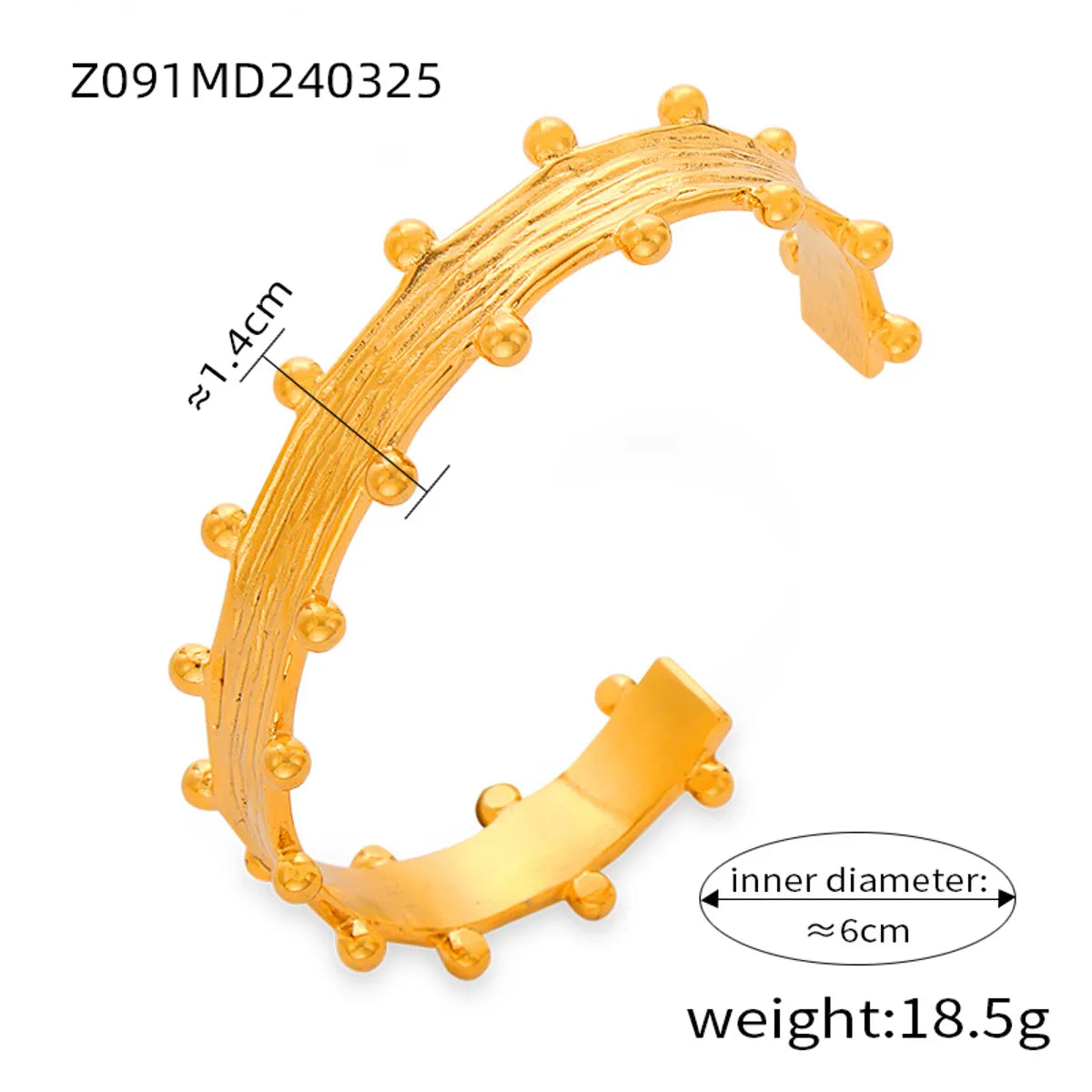Casual Simple Style Streetwear Round Spray Ball Titanium Steel 18K Gold Plated Artificial Pearls Rhinestones Bangle In Bulk