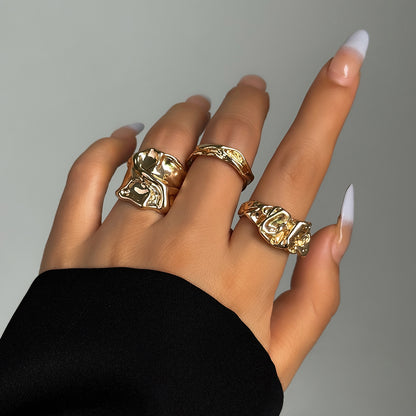 Casual Vintage Style Classic Style Irregular Geometric Round Alloy Irregular Thick Alloy Women's Rings