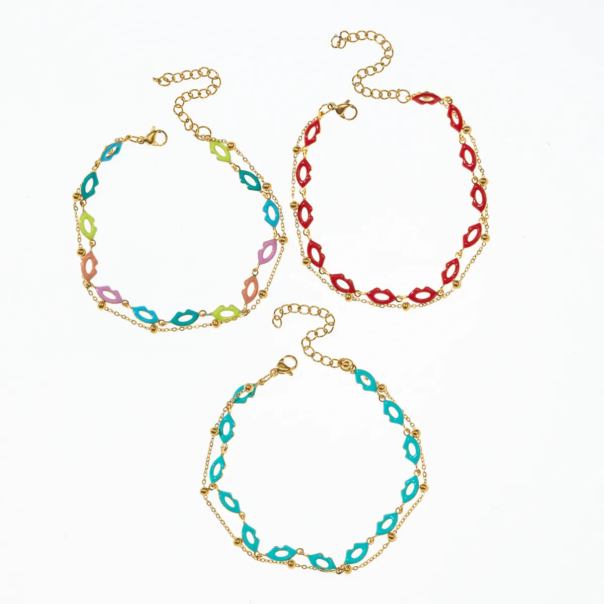 Classic Style Geometric Lips 304 Stainless Steel 18K Gold Plated Bracelets In Bulk