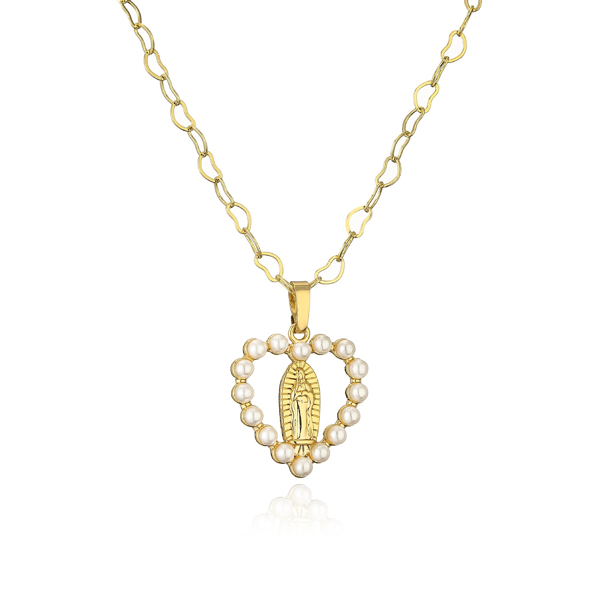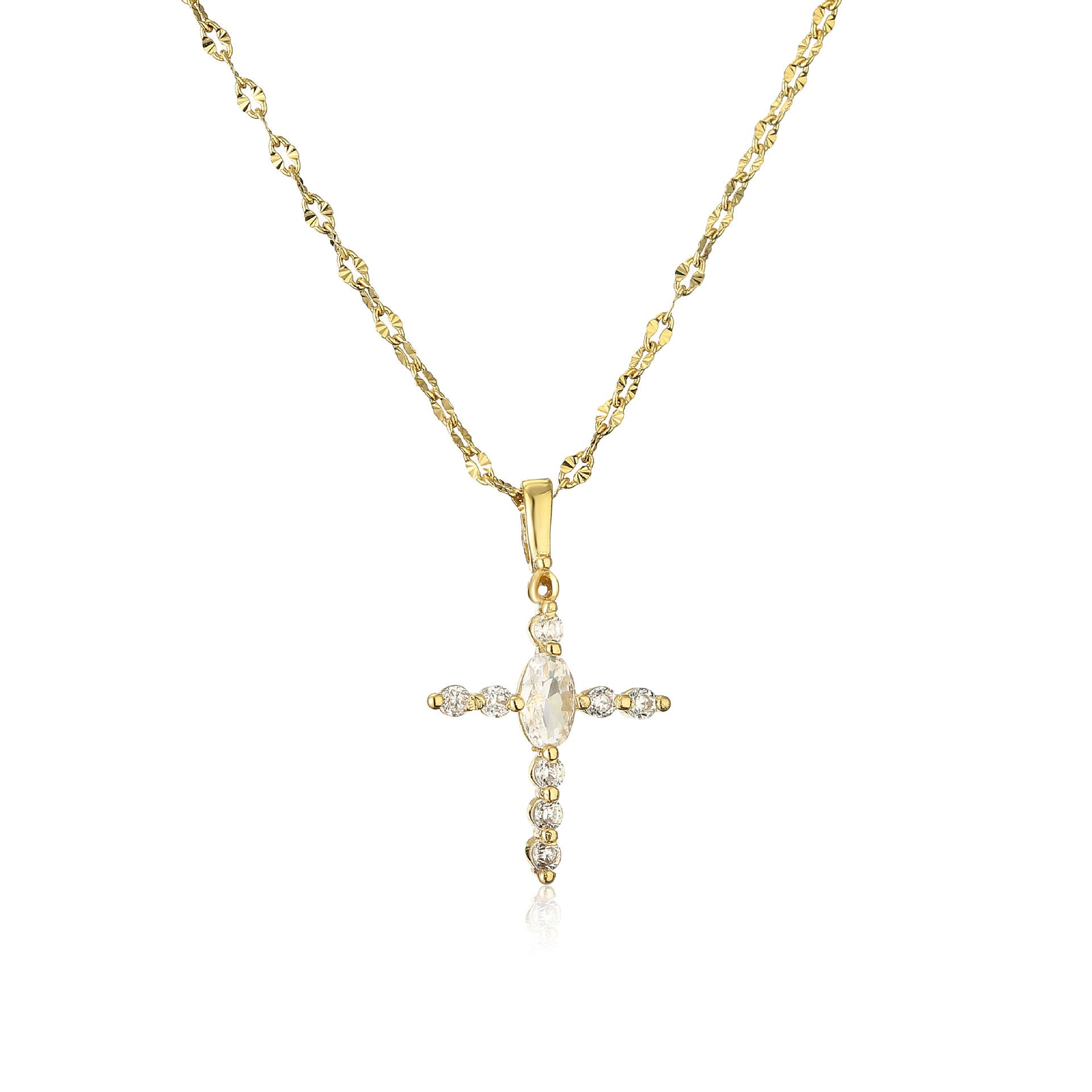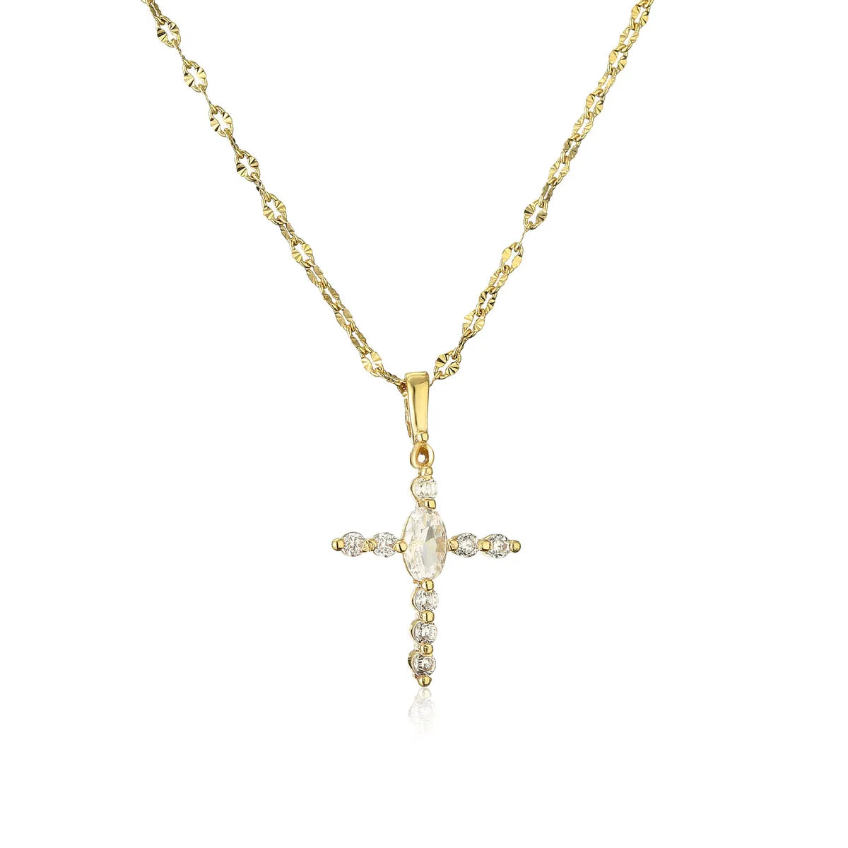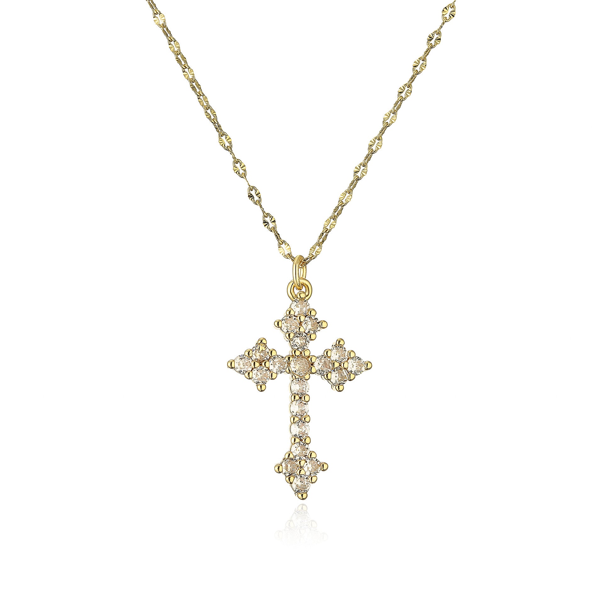 Classic Style Shiny Cross Heart Shape Copper Inlay Artificial Pearls Zircon Pendant Necklace