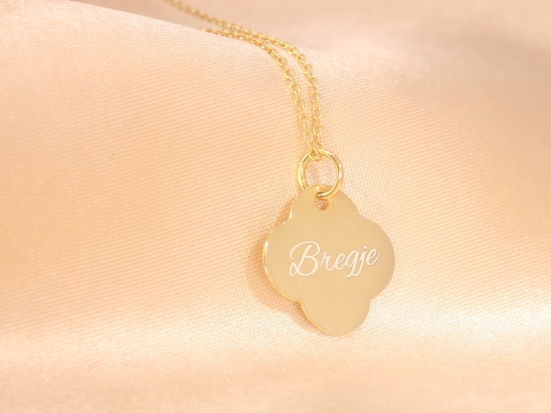 This Clover Name Necklace is a radiant gold necklace that will surely bring a touch of luck and happiness to any woman's life! This handmade jewelry piece is crafted with utmost care and adorned with a whimsical clover-shaped pendant.