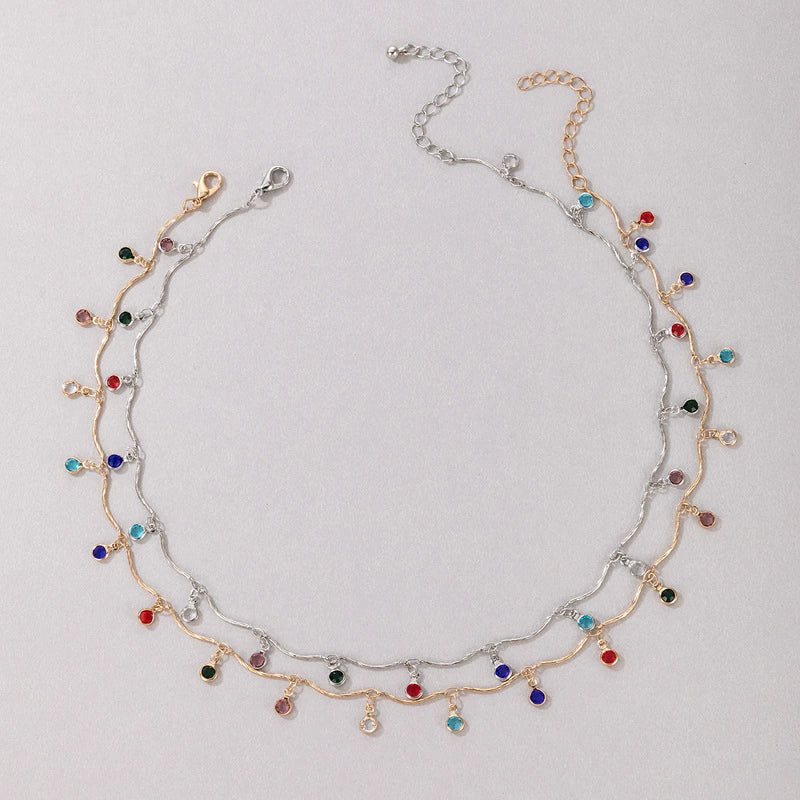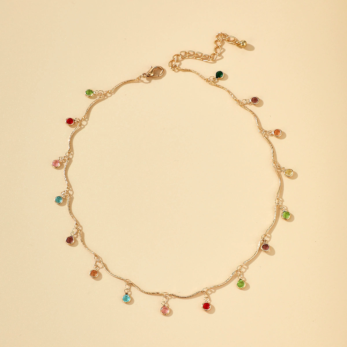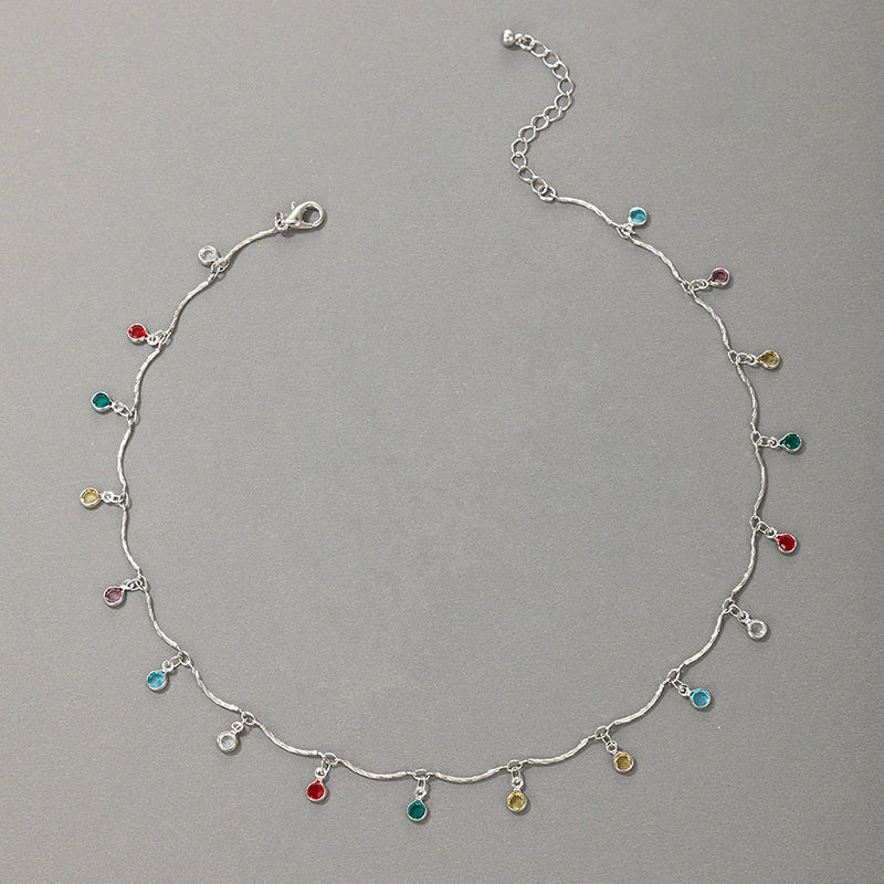 Colorful Round Bead Tassel Candy Color Dropshaped Electroplated Alloy Necklace