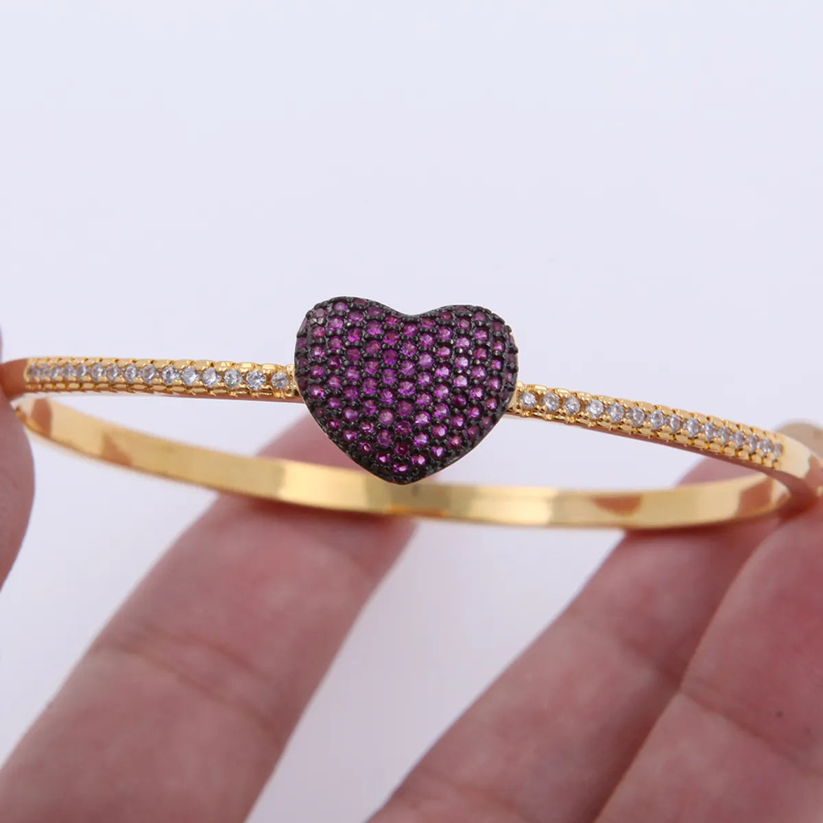 Copper 18K Gold Plated Simple Style Classic Style Enamel Inlay Heart Shape Zircon Bangle