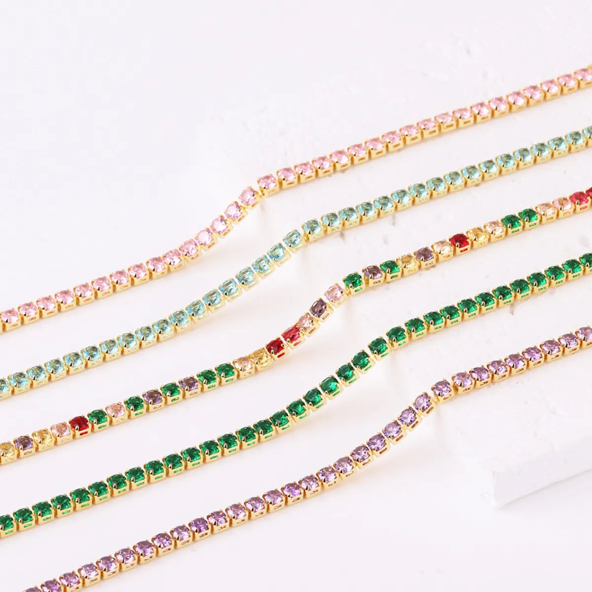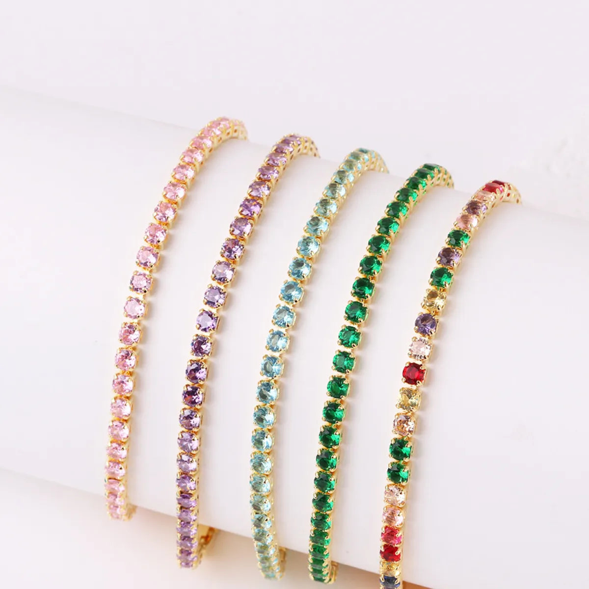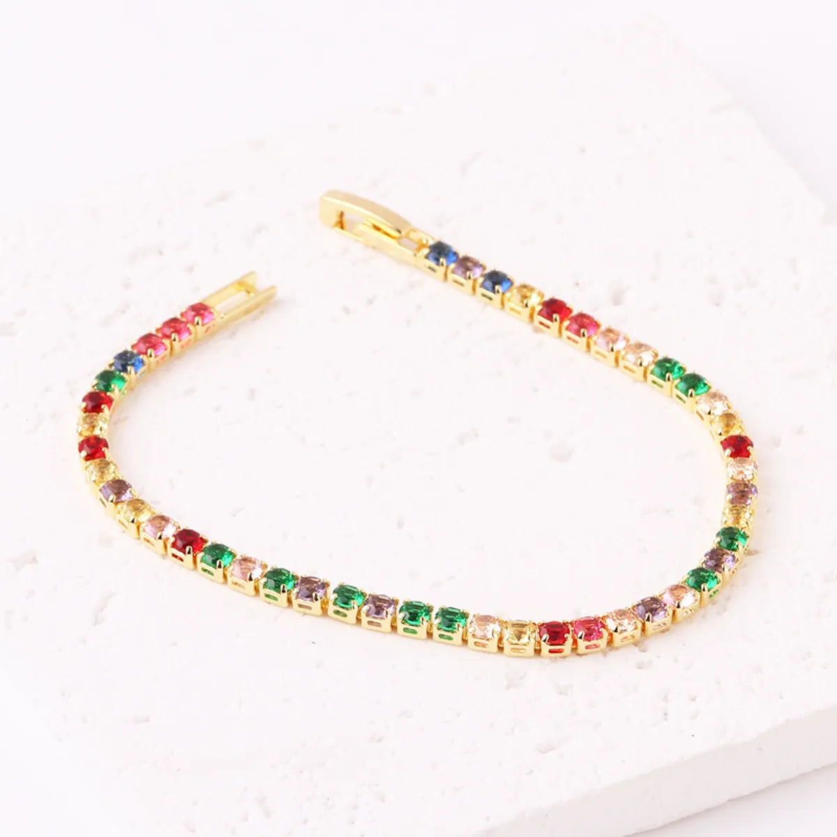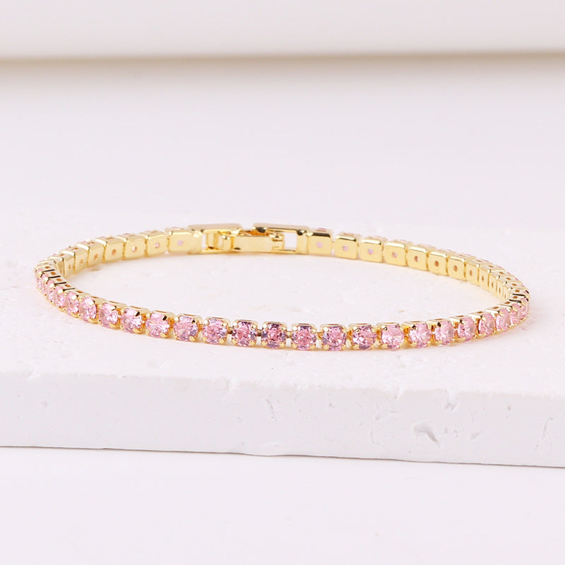 Cross-border Hot Selling European And American Popular Personalized Color Zircon Bracelet Fashion Wild Hip Hop Tennis Chain Wholesale