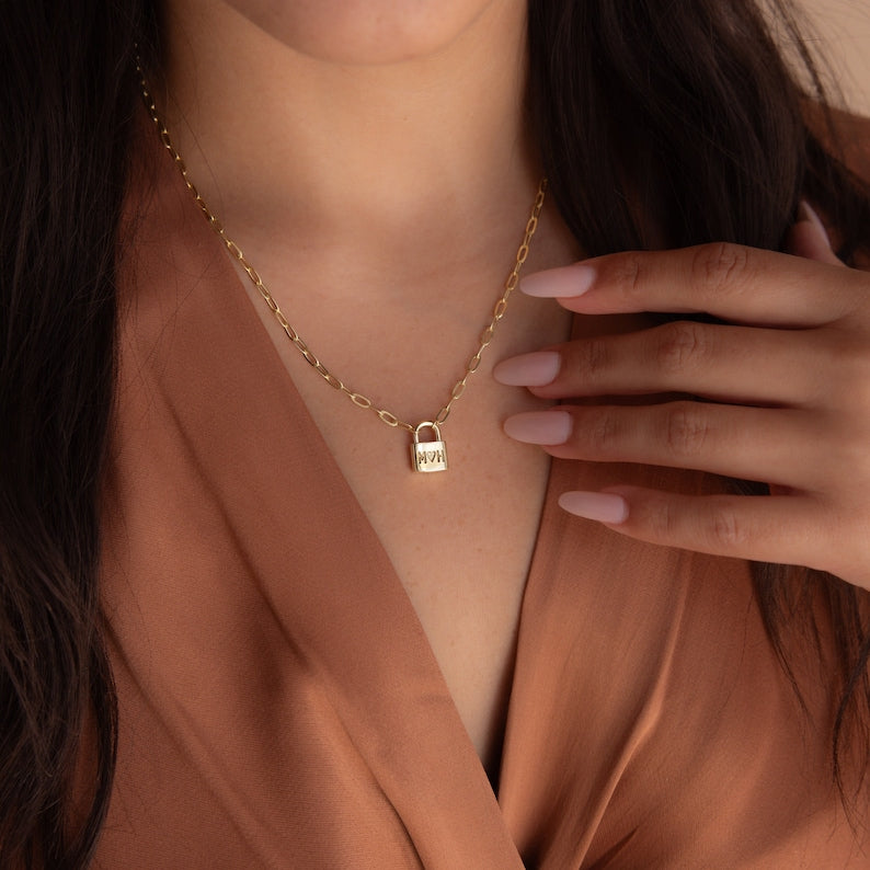 Featuring ~14x9.5mm Padlock Pendant on a ~4mm Paperclip Link Chain
