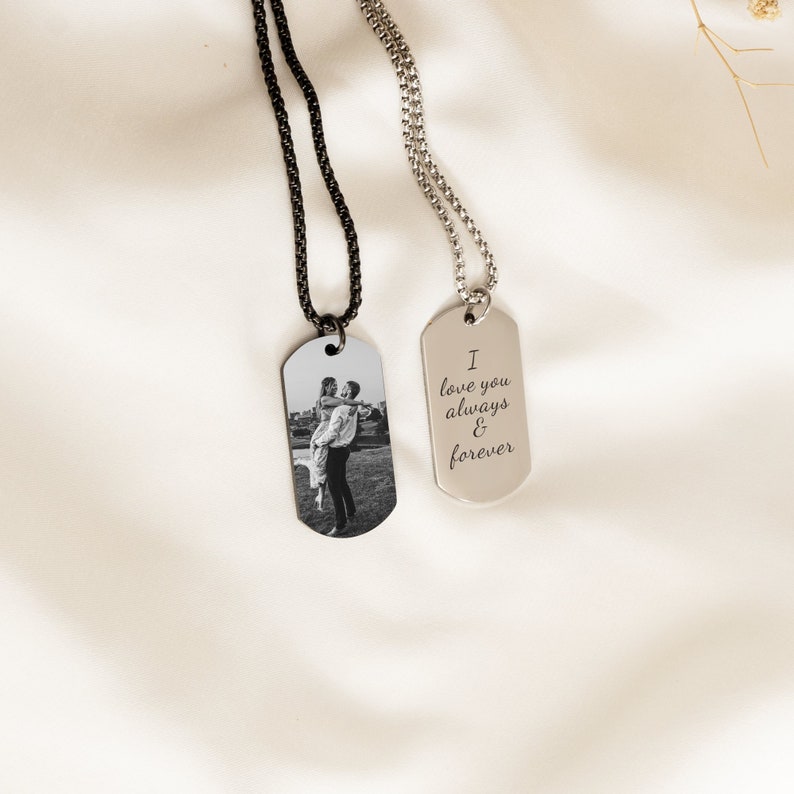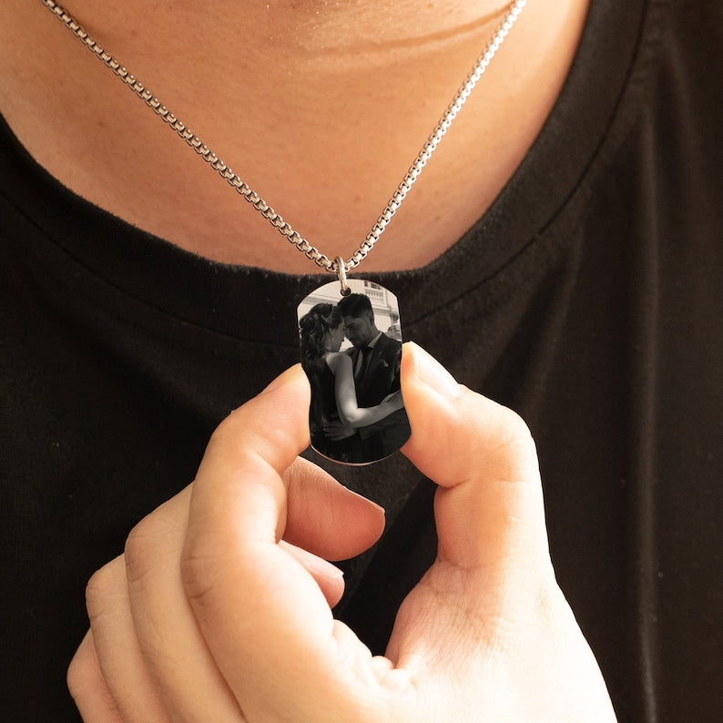 Customized Picture Necklace,Engraved Real Photo Necklace with Text,Portrait Necklace,Anniversary Gifts for Husband,Boyfriend Gift,Men's Gift