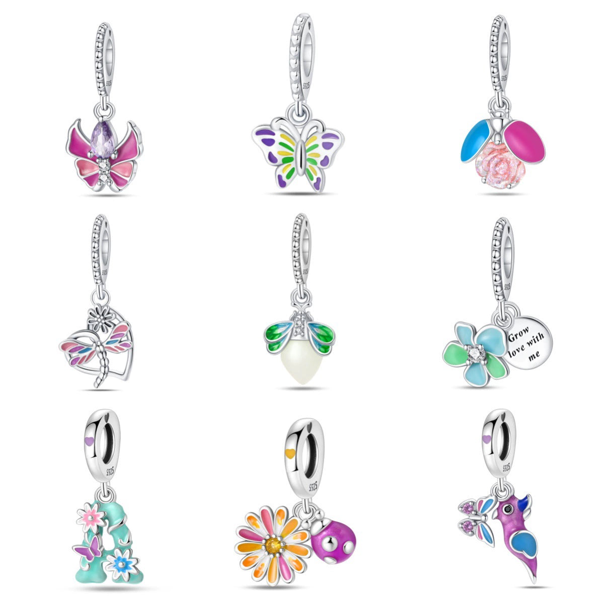 Diy Jewelry Accessories Charm Bracelet 925 Sterling Silver Luminous Firefly Butterfly Beads Dripping Oil Design