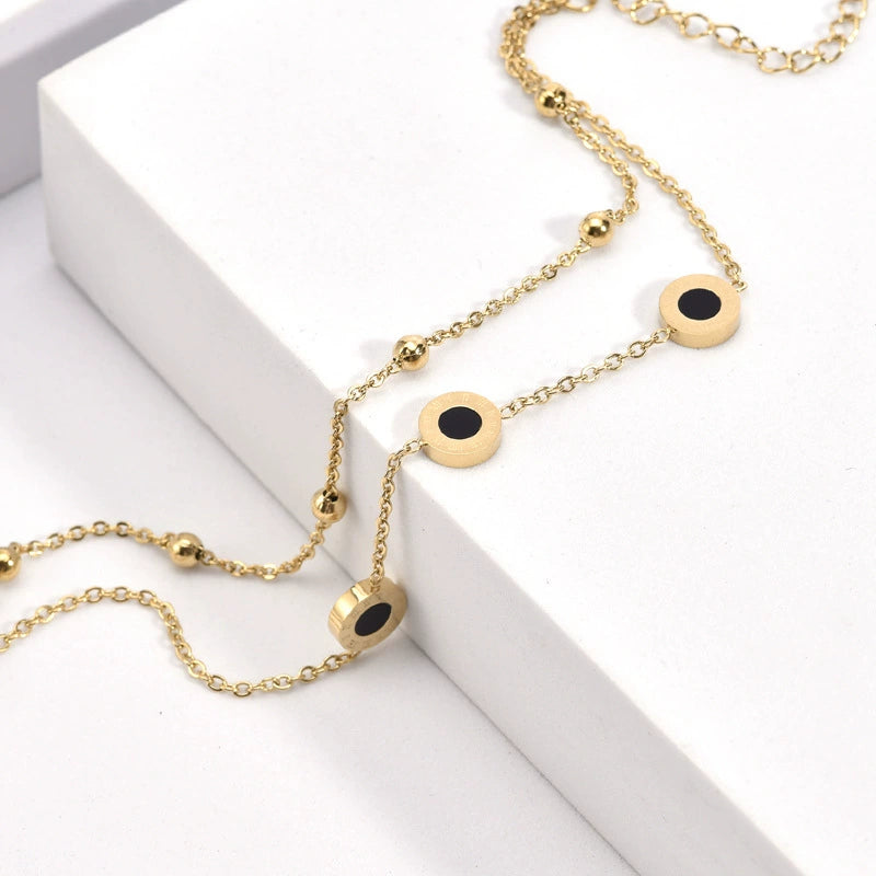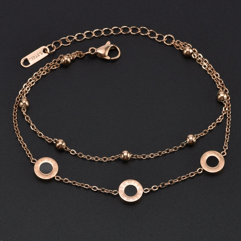 Double Layer Bead Chain Roman Round Ladies Titanium Steel Bracelet With Geometric Pattern And Diamond Design