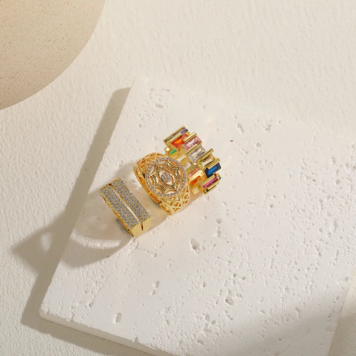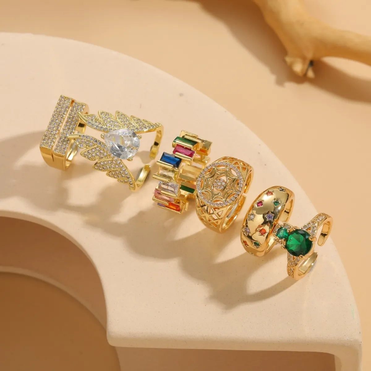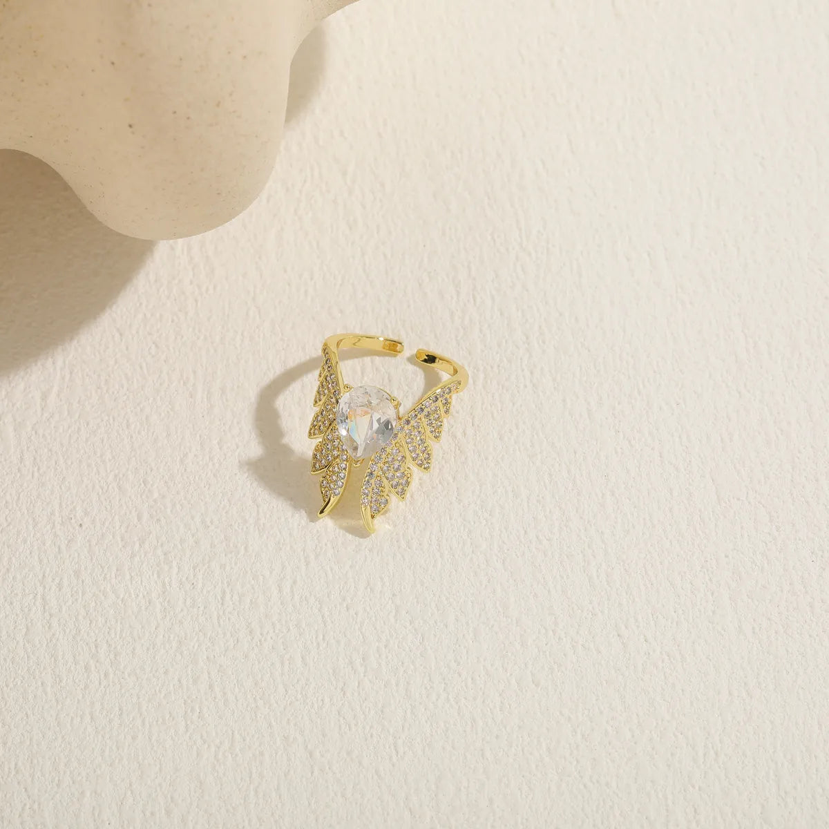 Elegant Classic Style Star Water Droplets Wings Copper Asymmetrical Plating Inlay Zircon 14k Gold Plated Open Rings