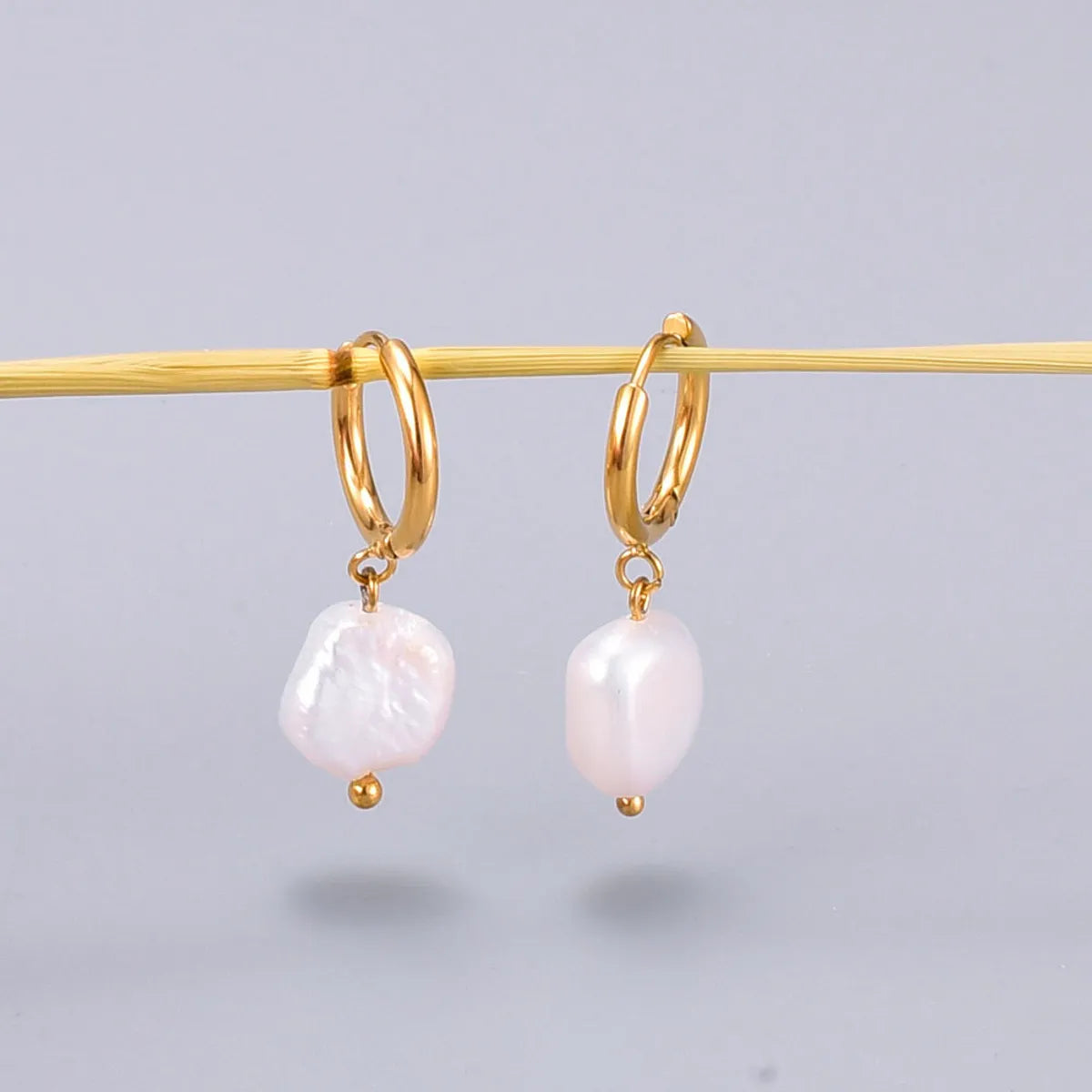 Elegant Geometric Plating Titanium Steel Pearl Drop Earrings