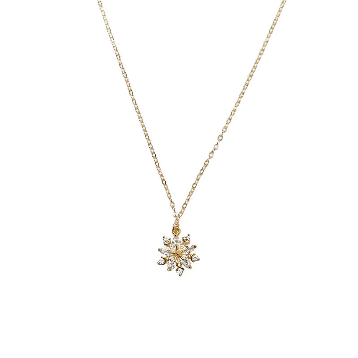 Elegant Luxurious Geometric Sterling Silver Plating Inlay Zircon 14k Gold Plated Pendant Necklace