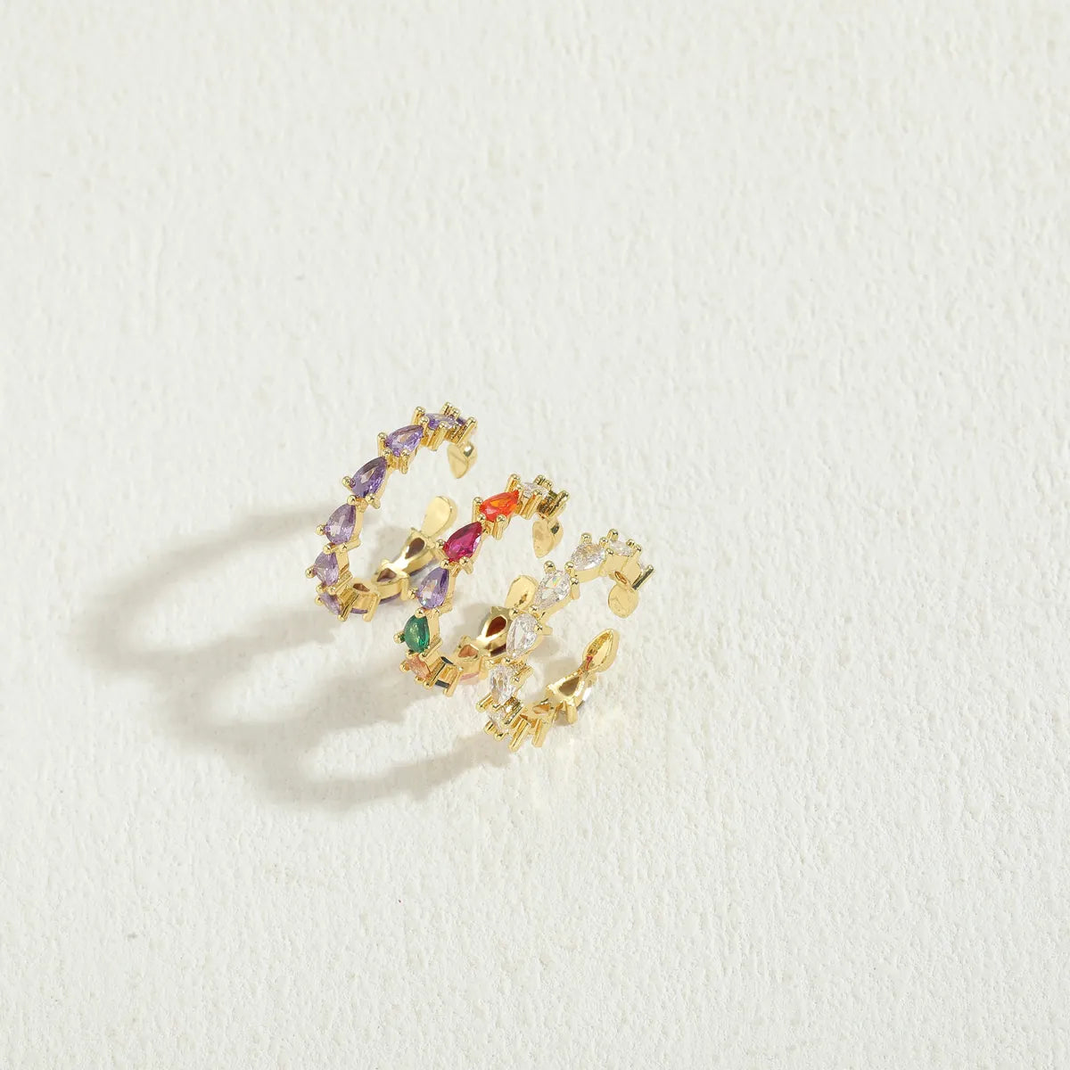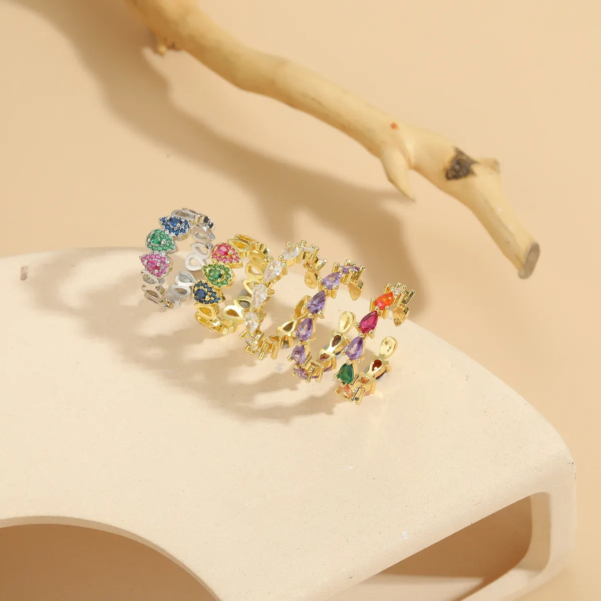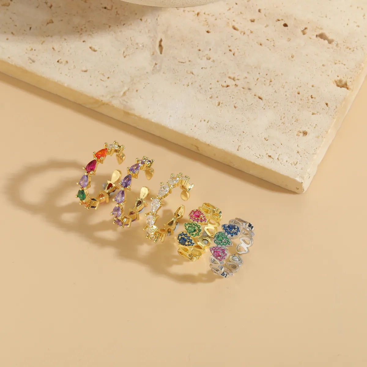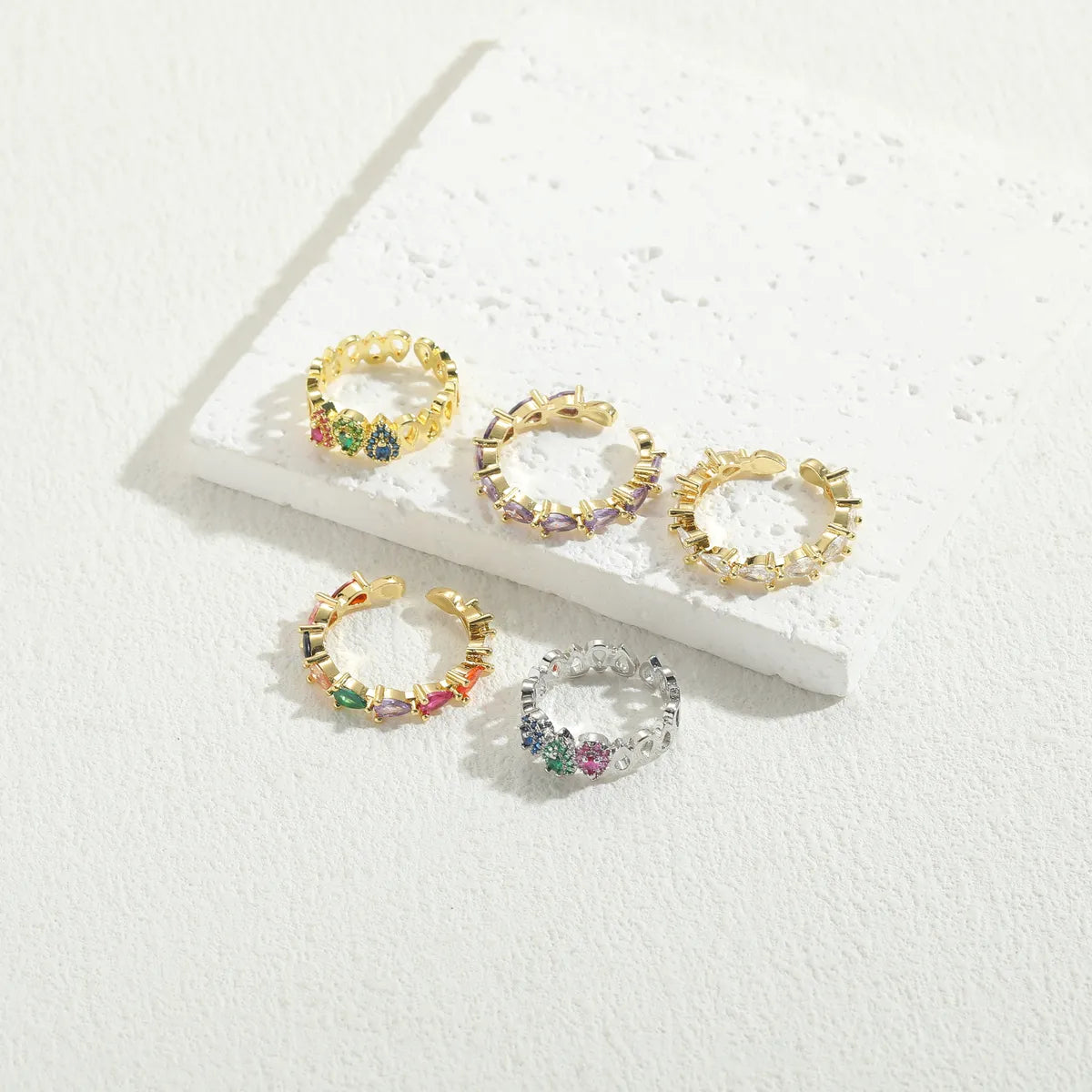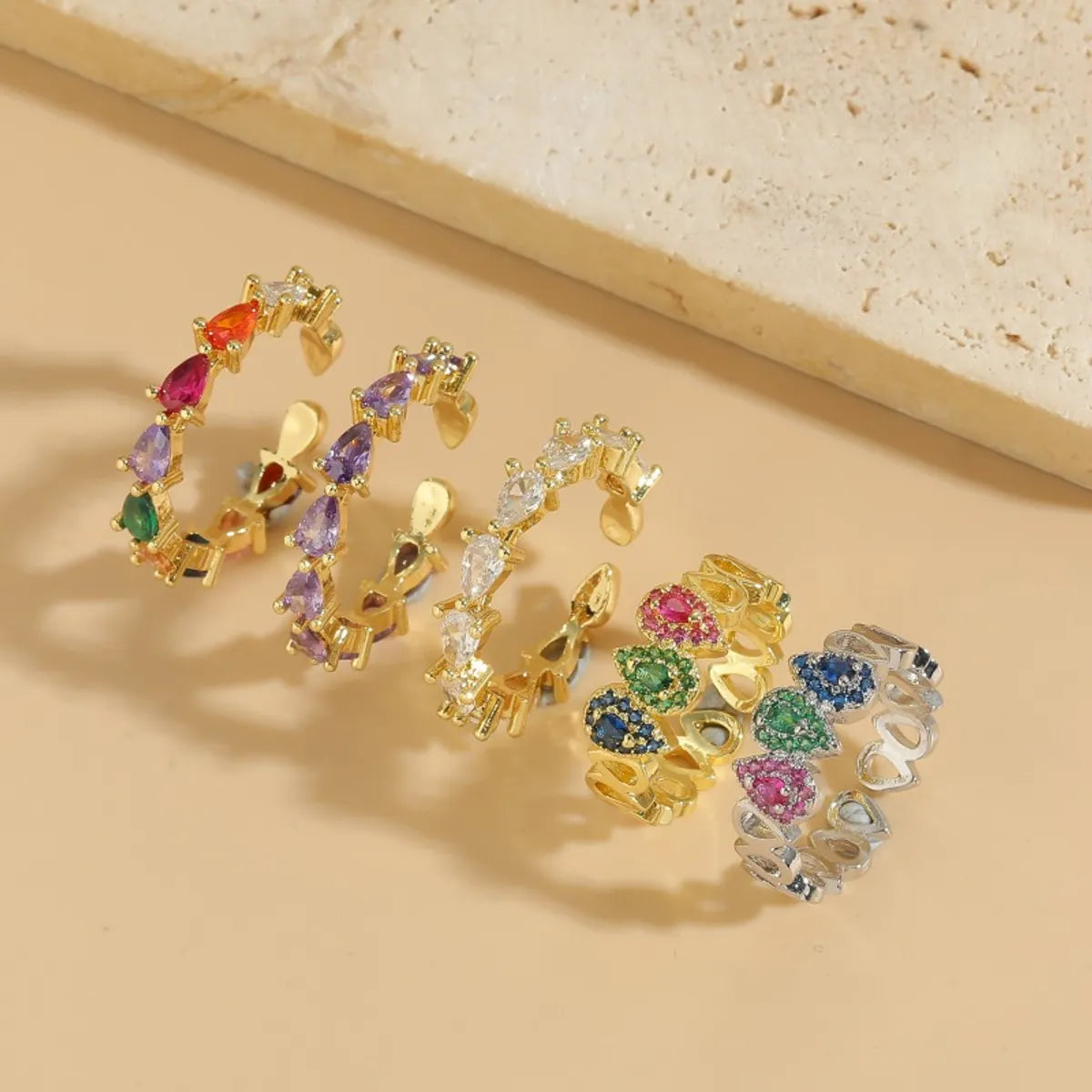 Elegant Luxurious Water Droplets Copper Plating Inlay Zircon 14k Gold Plated Open Rings