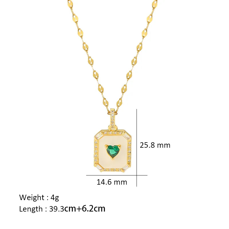Elegant Simple Style Heart Shape Titanium Steel Copper Plating Inlay Shell Zircon 18k Gold Plated Pendant Necklace