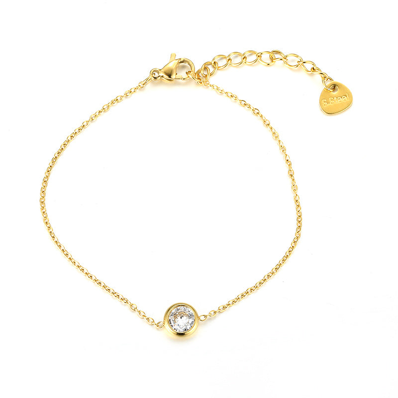 Elegant Simple Style Round Stainless Steel Plating Inlay Artificial Rhinestones 18k Gold Plated Bracelets