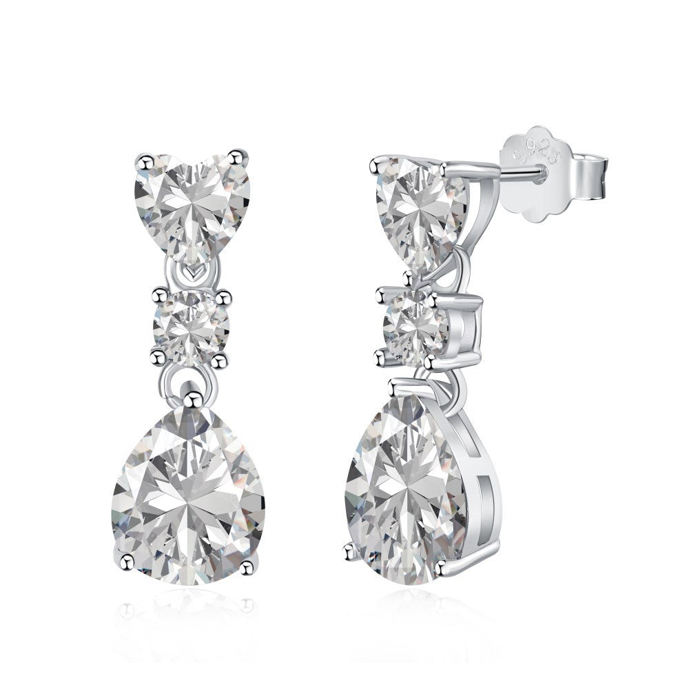 Elegant Square Water Droplets Heart Shape Sterling Silver Inlay Zircon Women's Rings Earrings Necklace