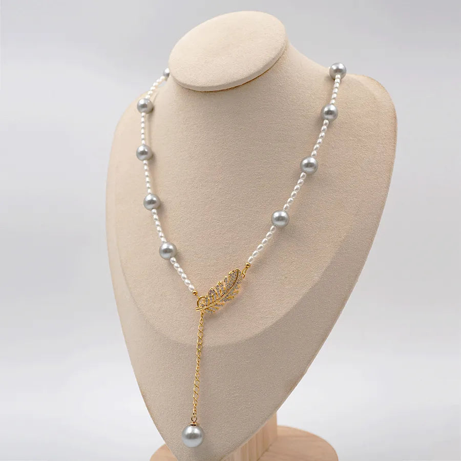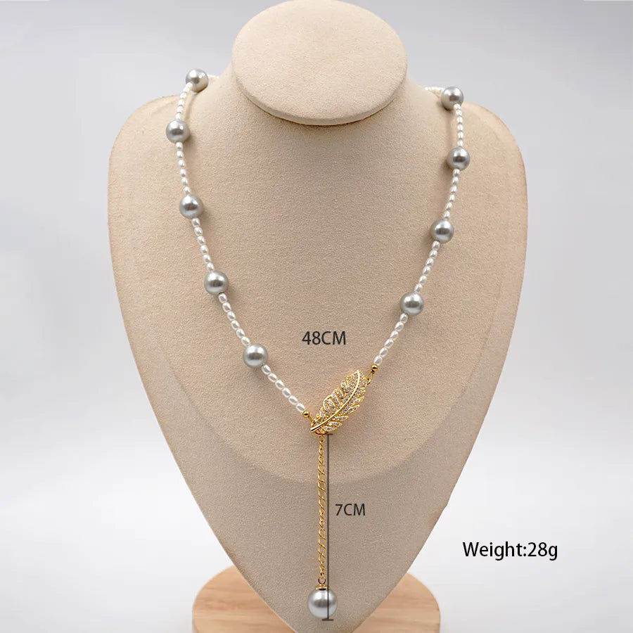 Elegant Vintage Style Vacation Feather Imitation Pearl Titanium Steel Copper Beaded Plating Inlay Zircon Gold Plated New Year Birthday Women'S Pendant Necklace