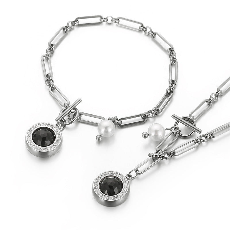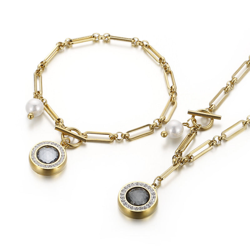 European And American Personalized Creative Gold Stainless Steel Multicolor Pendant Rhinestone Glass Titanium Steel Ornament
