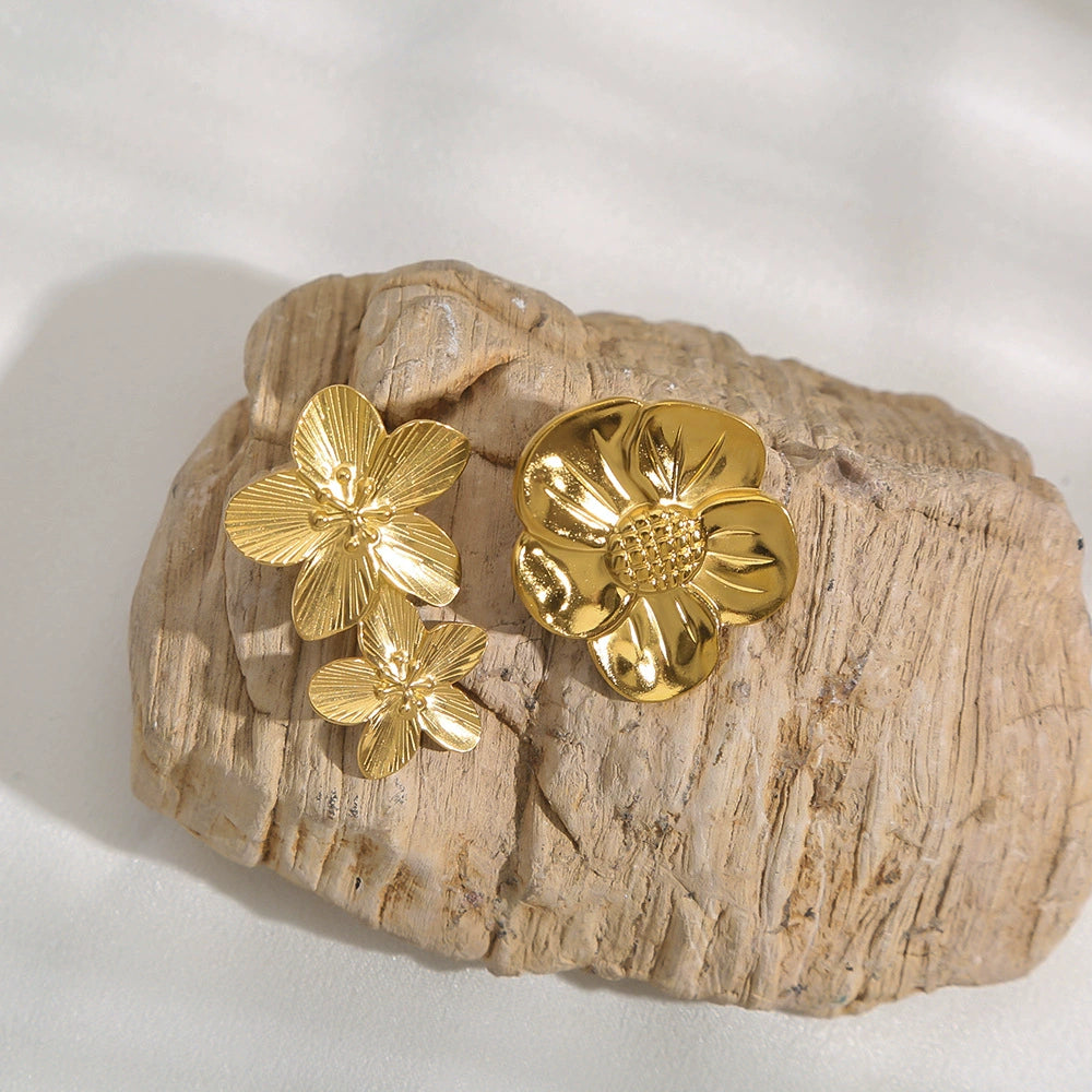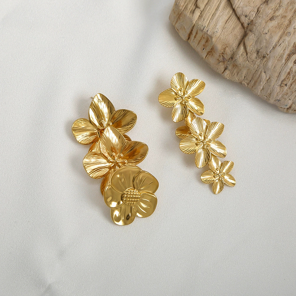 Exaggerated Asymmetrical Floral Stainless Steel Women's Earrings With Electroplating