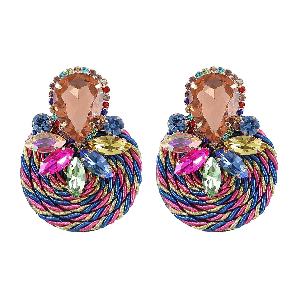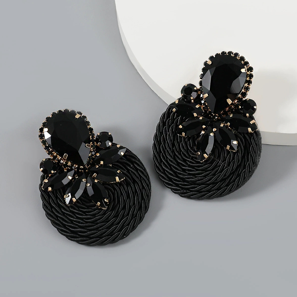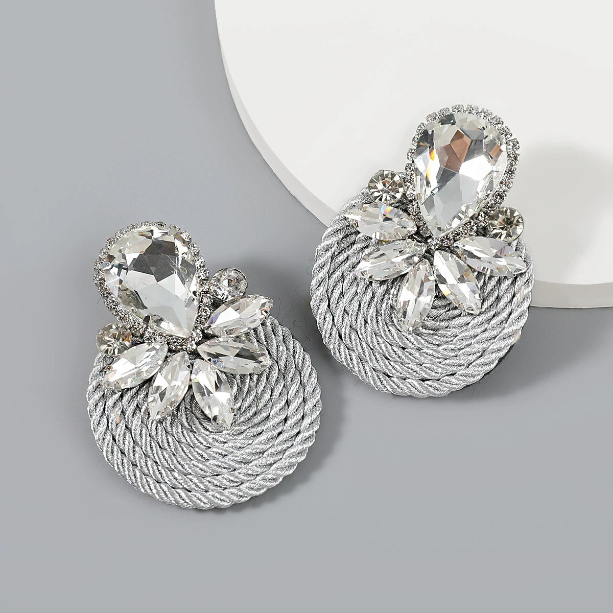 Exaggerated Geometric Alloy Glass Diamondencrusted Round Earrings For Women