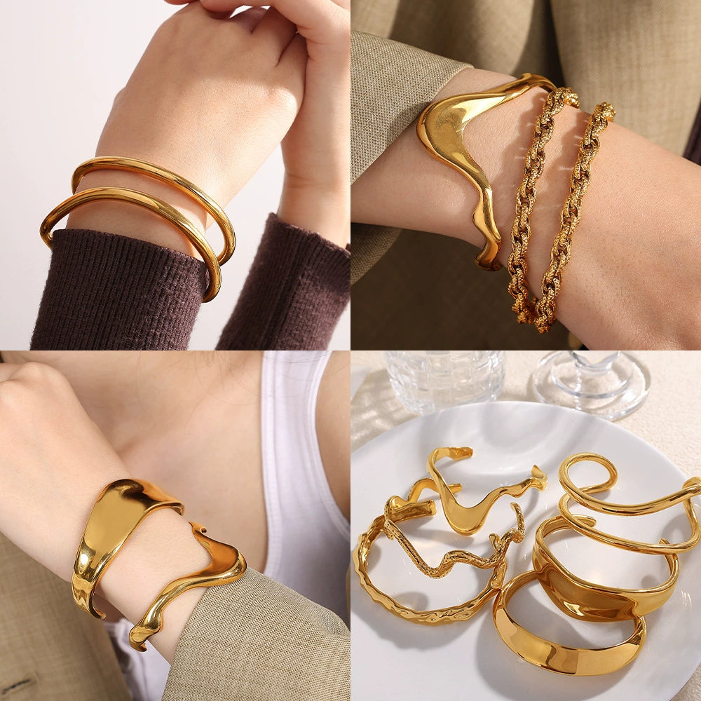 Exaggerated 316L Stainless Steel Geometric Wide Edition Electroplated Personality Trendy Bracelet Jewelry